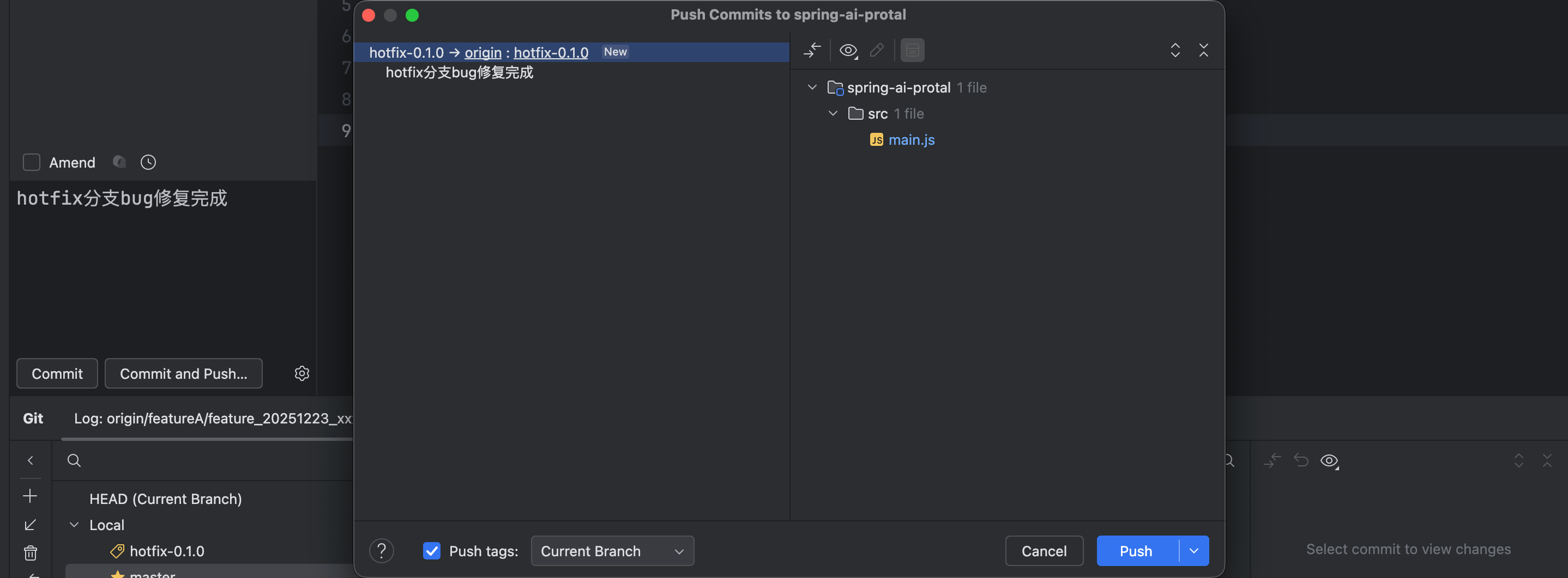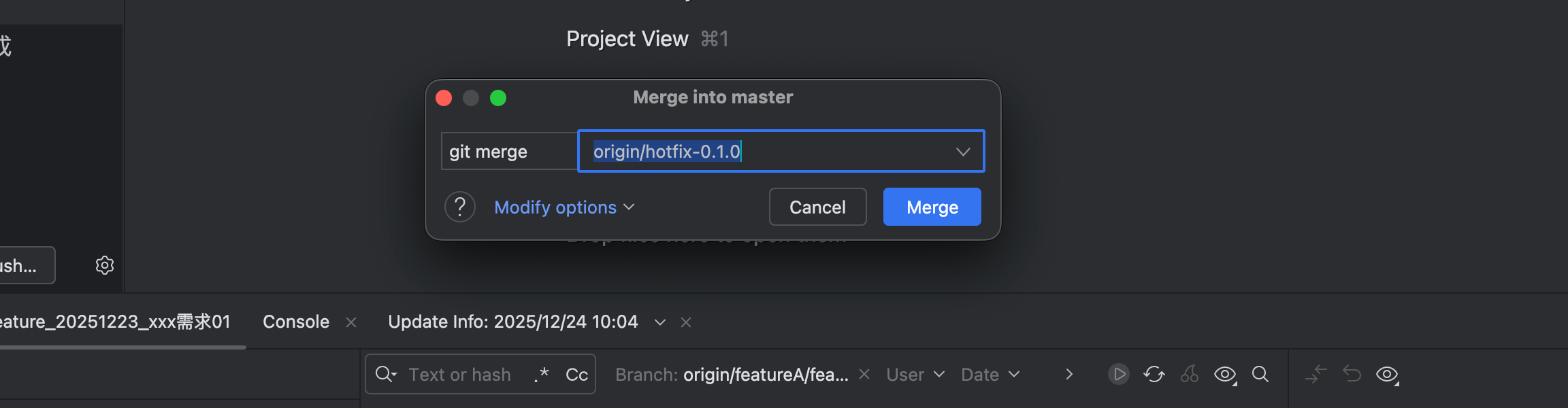 操作完成后可以考虑删除hotfix-0.1.0 分支