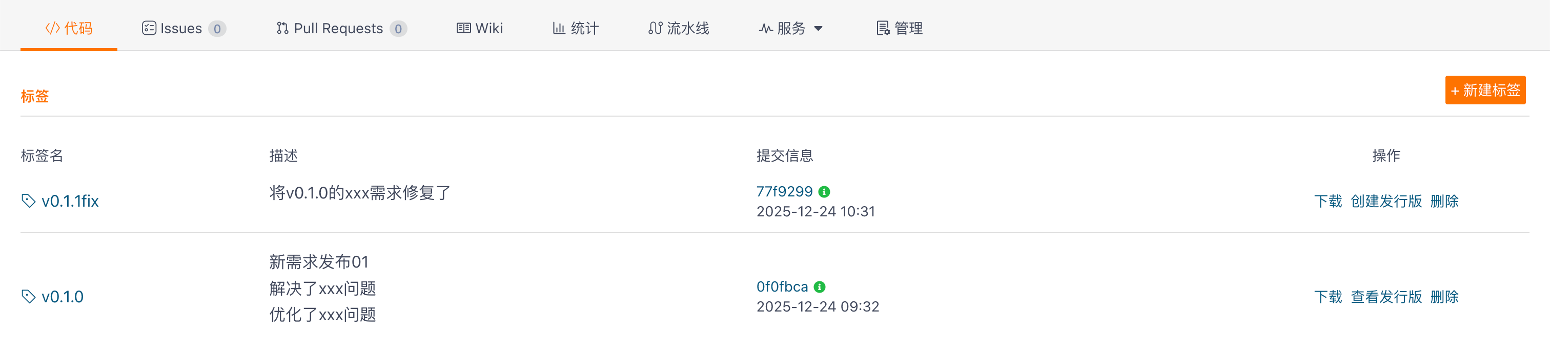 - 每一次合并到 master,通常都会打一个 tag(版本号)