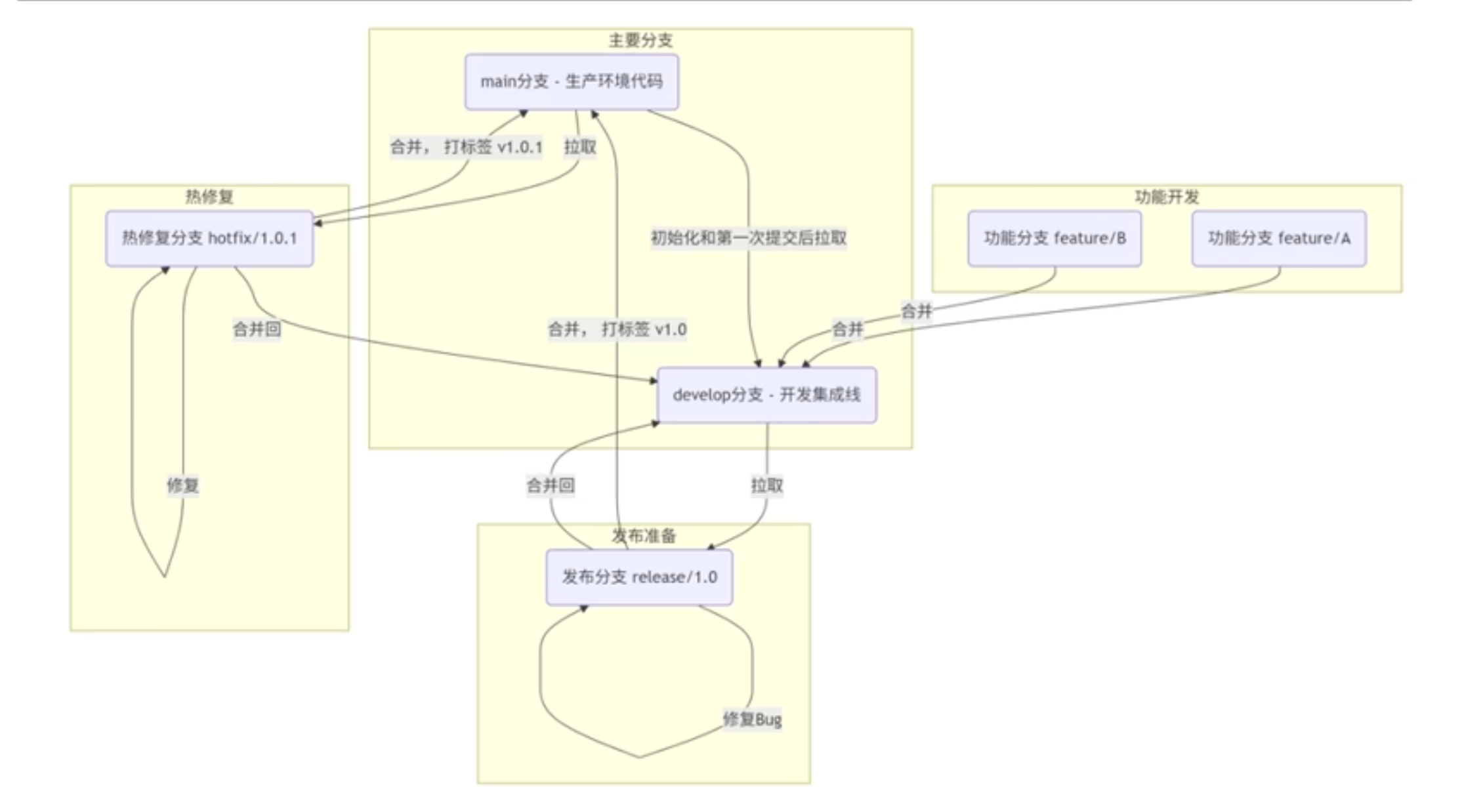 一套"大家都按同一规则来建分支、合并、发版"的工作流程
