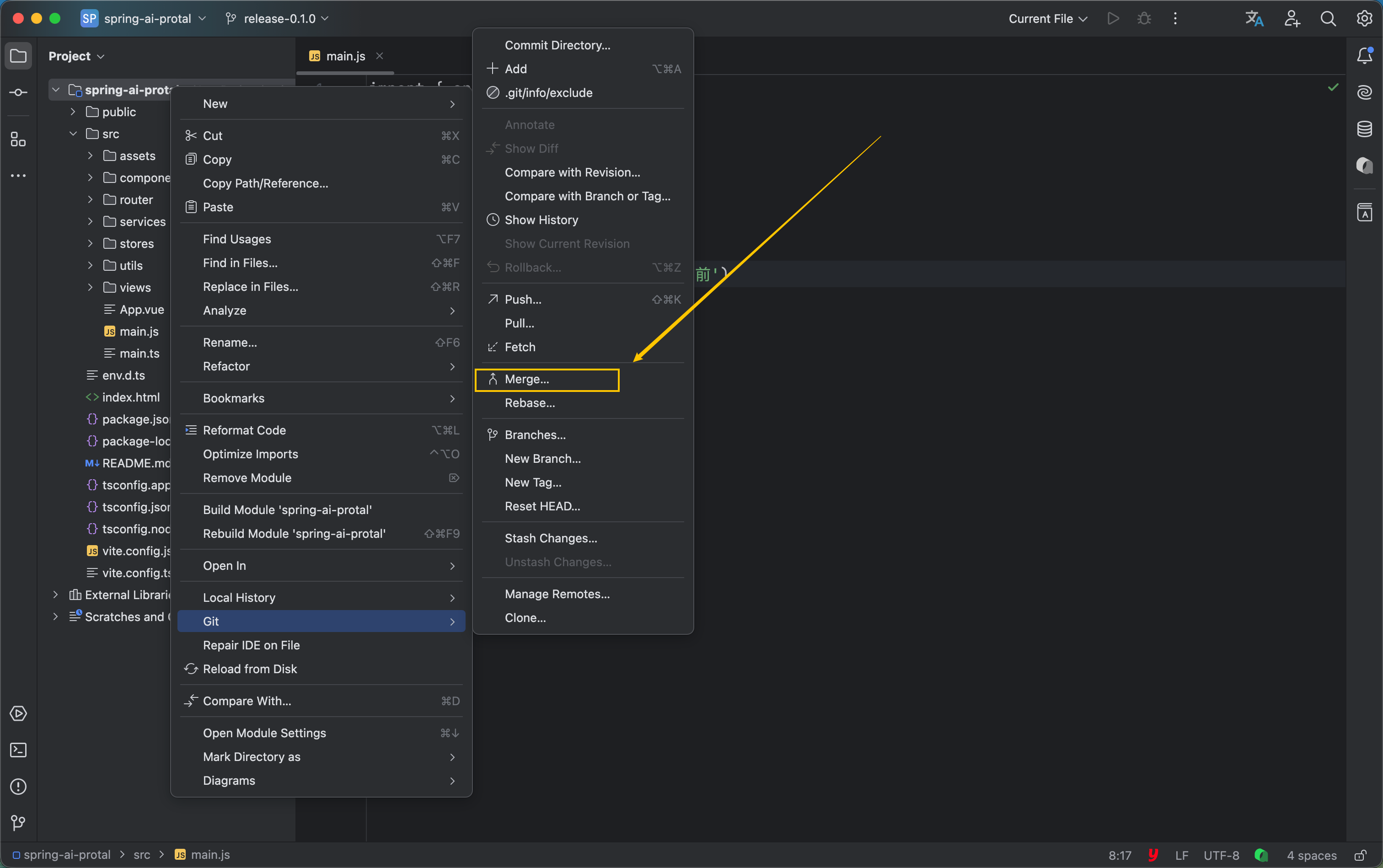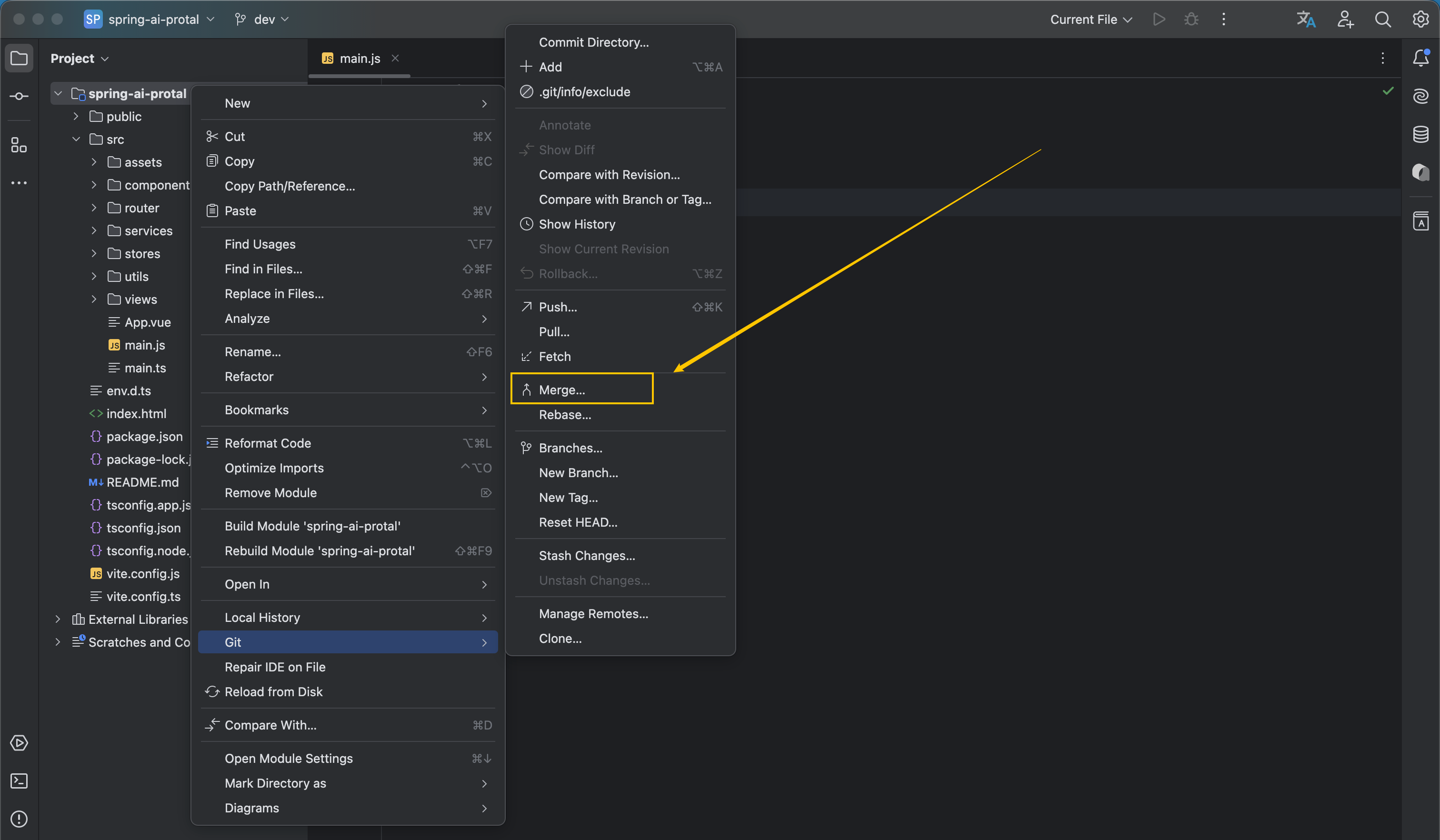 - 作用 :当你有两个分支(比如主分支main和一个特性分支feature),并且你想要把特性分支的更改合并到主分支时,使用