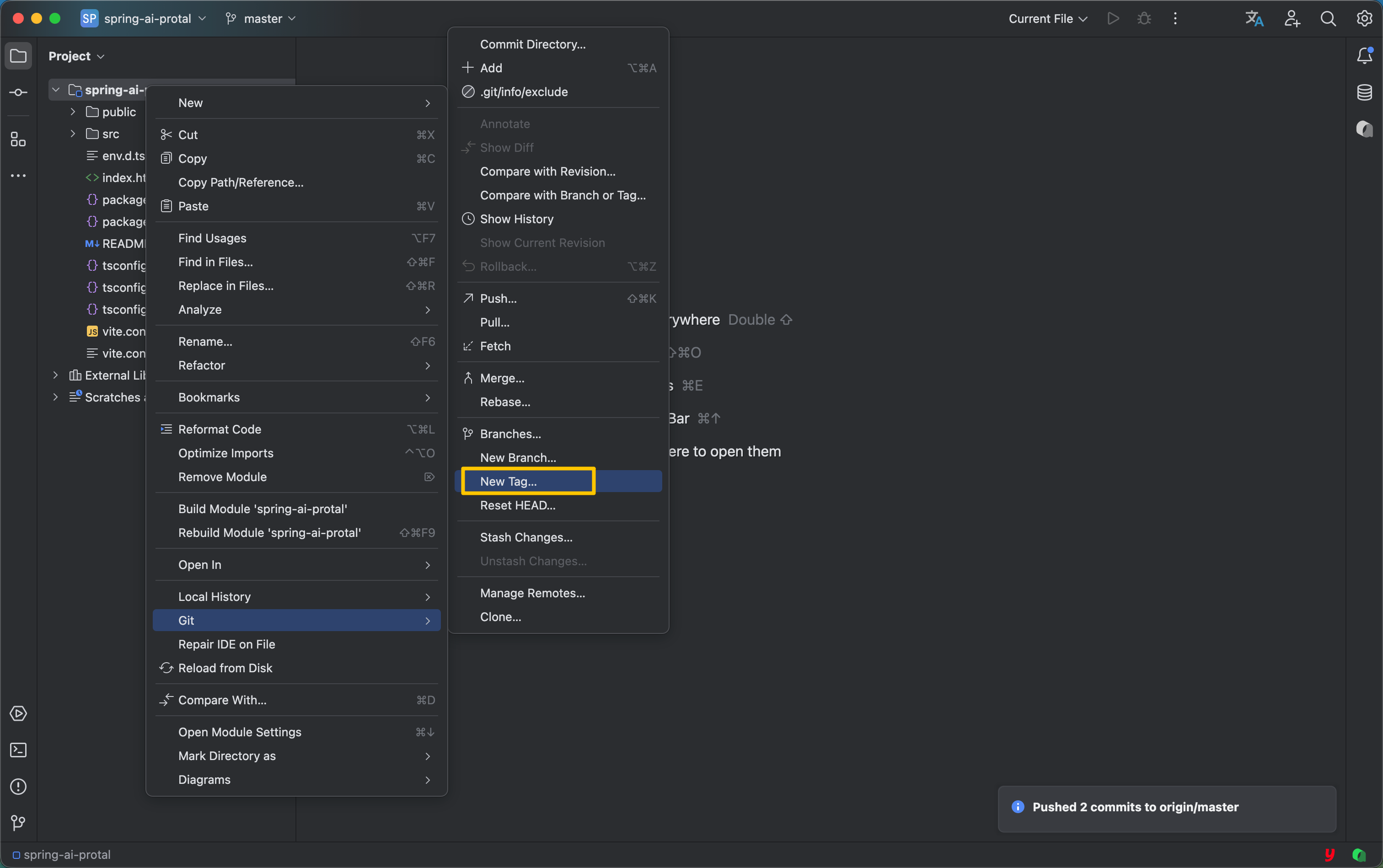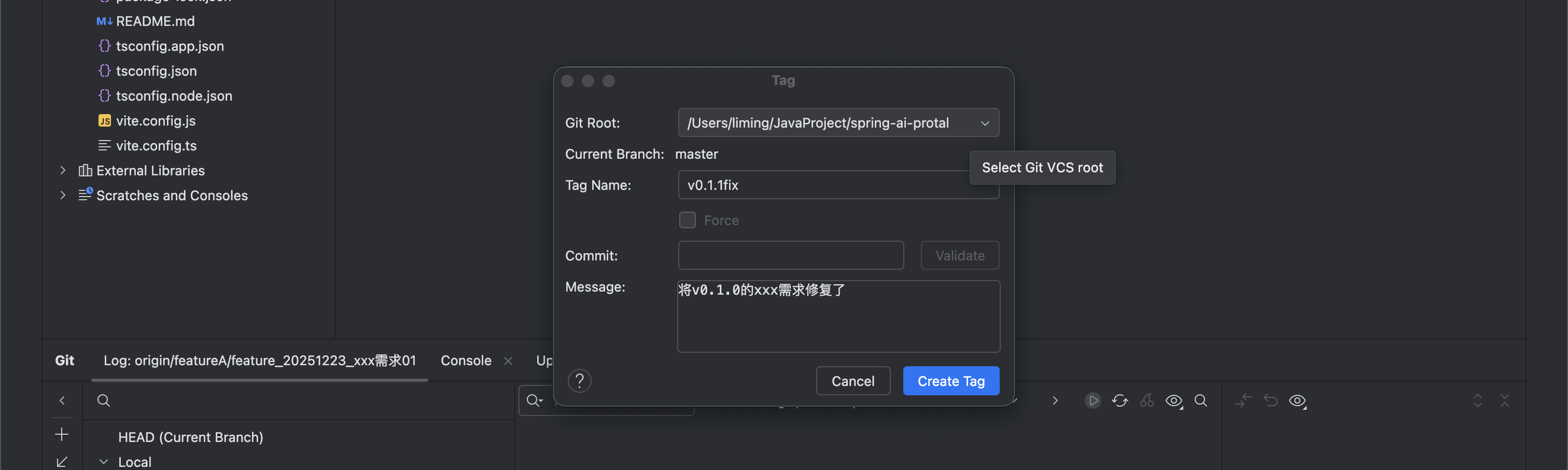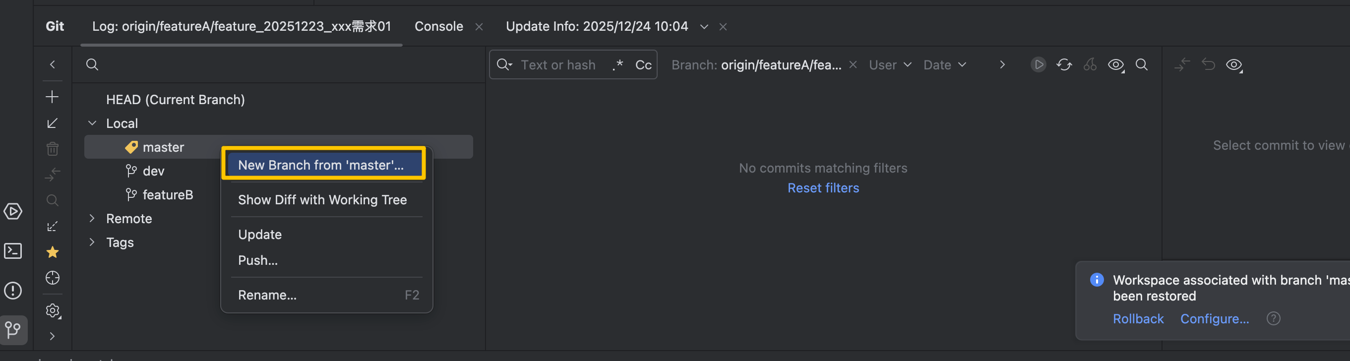 打开 idea git pull 同步分支,然后将release-0.1.0 分支从 remote 检出到 local