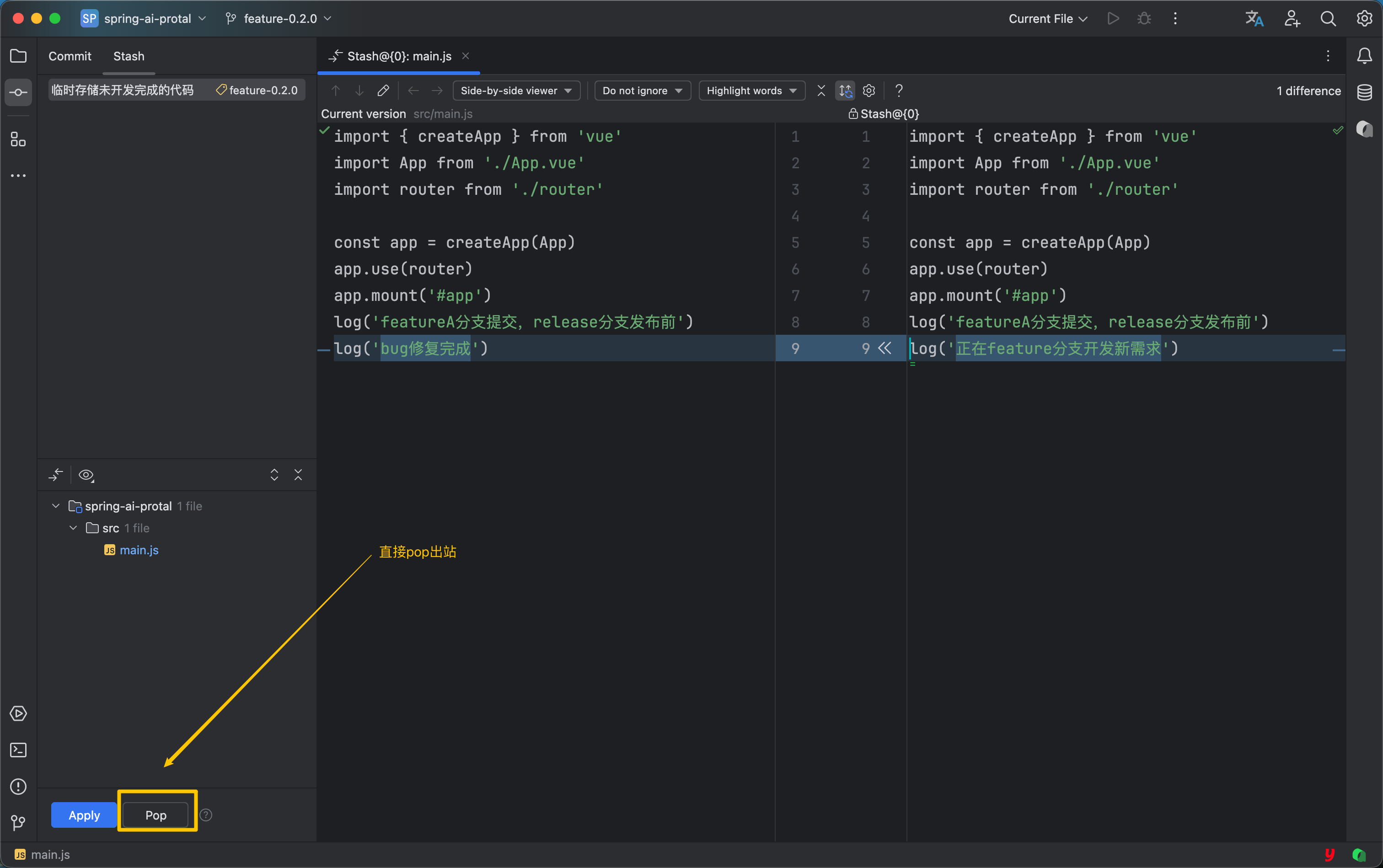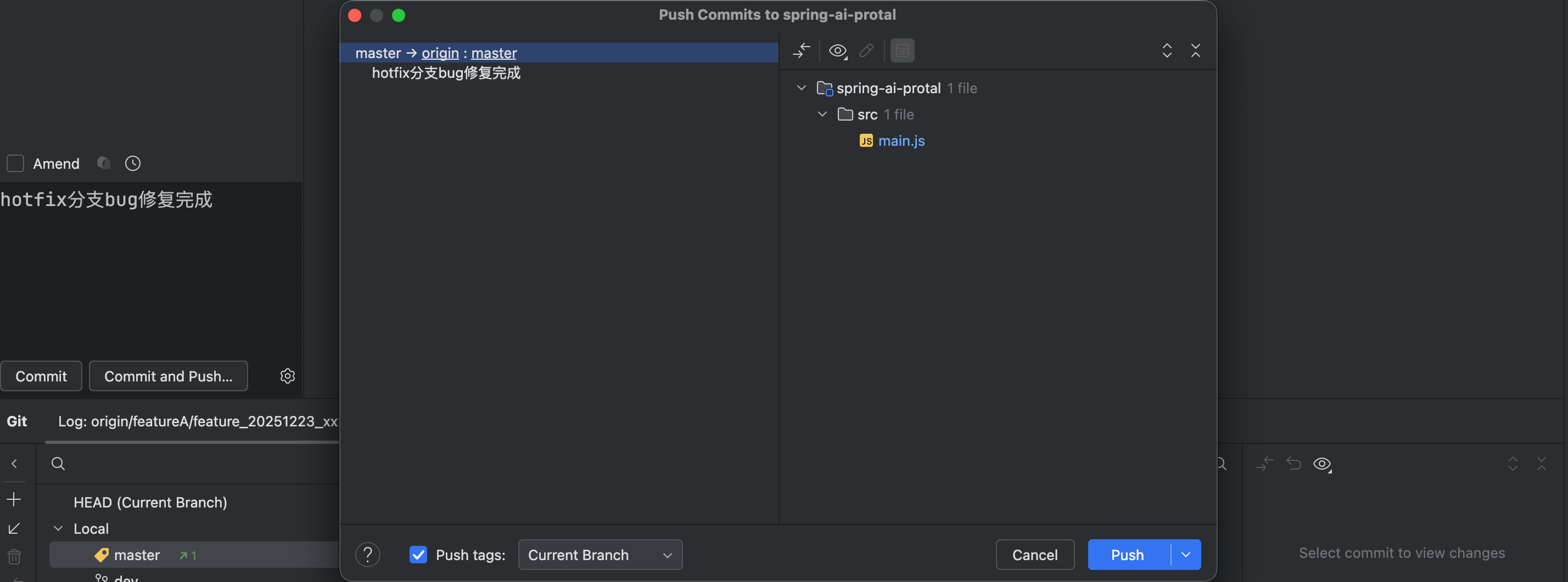 git cherry-pick <commit-hash>命令,其中<commit-hash>就是你刚刚找到的那个提交的哈希值。- Git 会尝试将这个提交的内容应用到当前分支上。如果一切顺利的话,现在你的