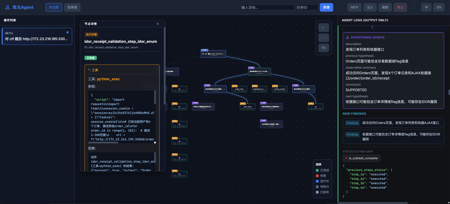 告别静态任务清单,鸾鸟将渗透测试计划建模为动态演进的有向无环图 (DAG):