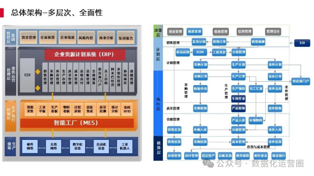 为实现这些目标,本方案从总体架构出发,构建了包含集团管控层、业务运营管理层、生产执行控制层的多层次智能工厂体系。通过智能排程、柔性化生产岛、拉动式生产等模式提升生产方式的智能化水平。方案还详细介绍了智能工厂的基础建设、关键系统如ERP与MES的集成、以及智能仓储管理、产品质量管理体系等具体实现路径,确保企业能够顺利构建起高效、透明、可控的智能工厂环境。
