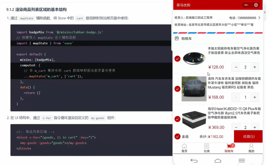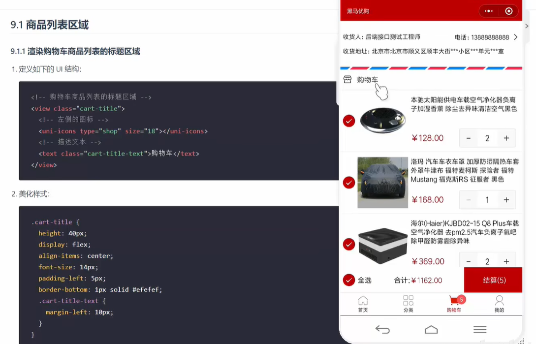 1.购物车页面-商品列表-渲染商品列表区域的构