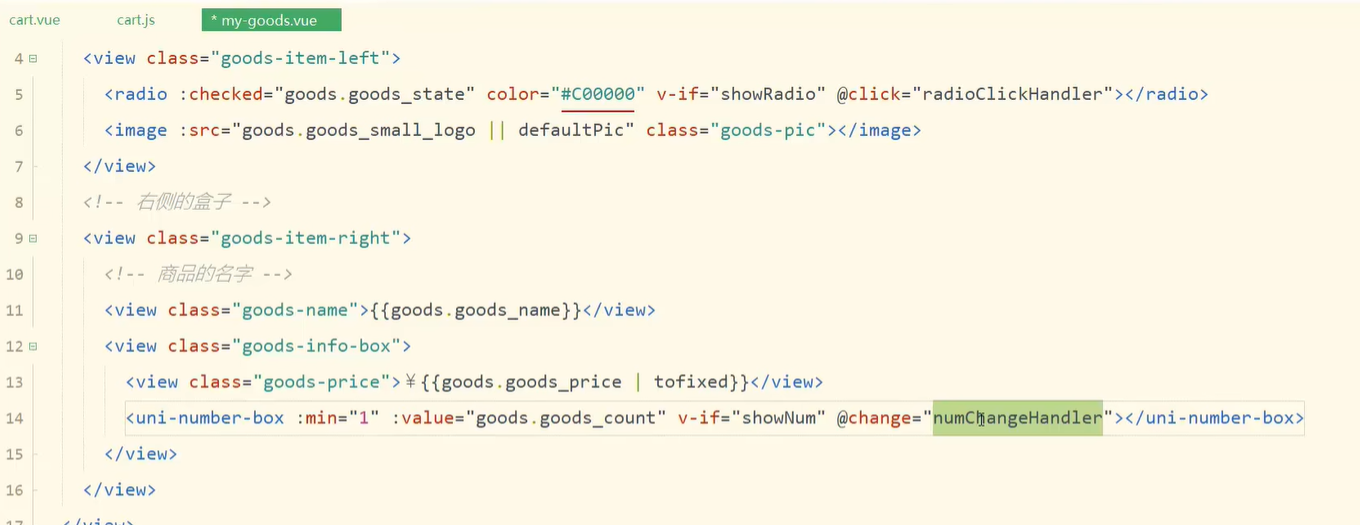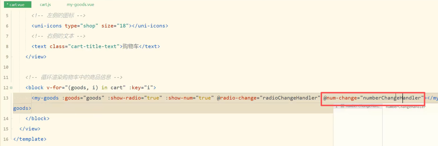 5.购物车页面-商品列表-封装num-change事件