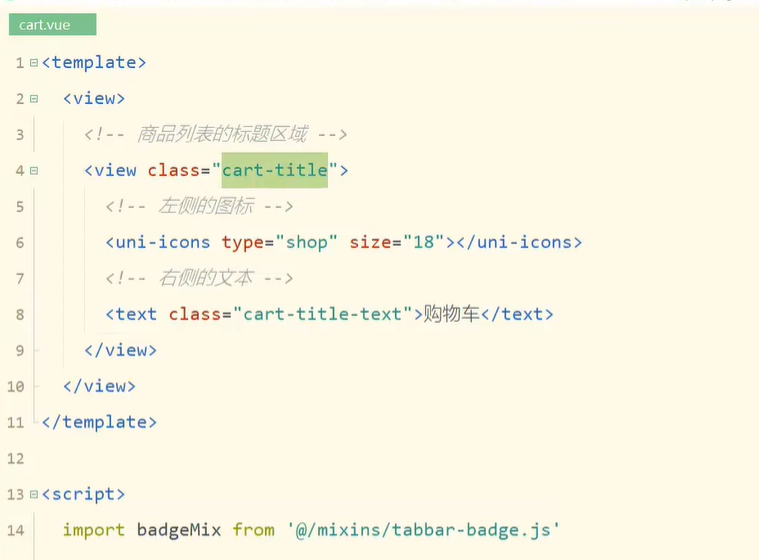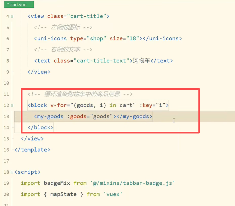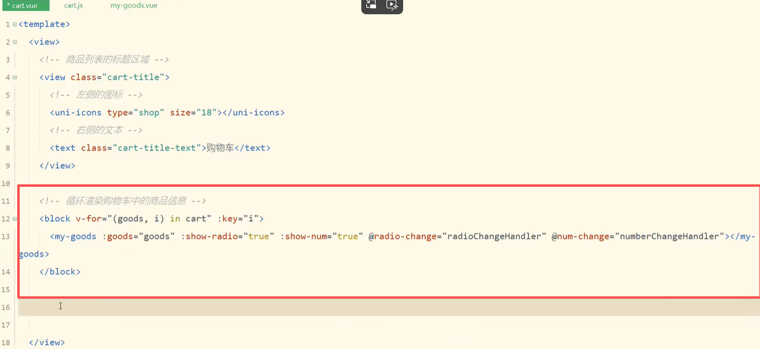 1.购物车页面-商品列表-渲染商品列表区域的结构