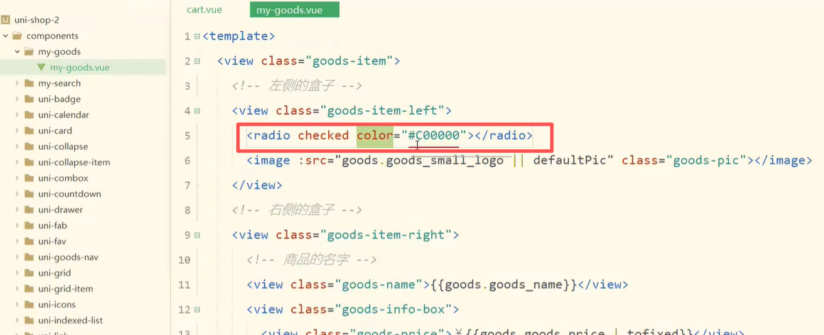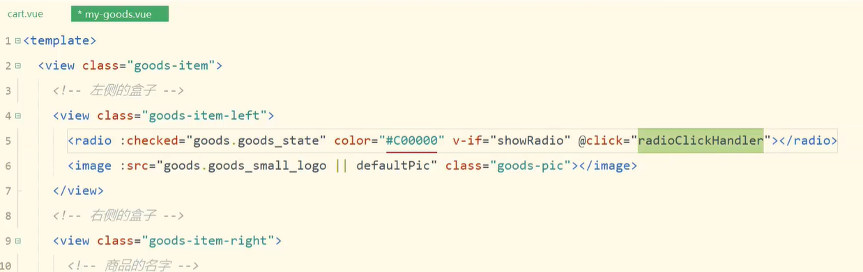 2.购物车页面-商品列表-基于props封装radio的勾选状态