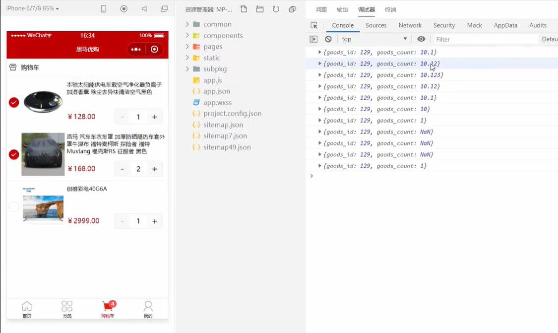 7.购物车页面-商品列表-修改购物车中商品的量
