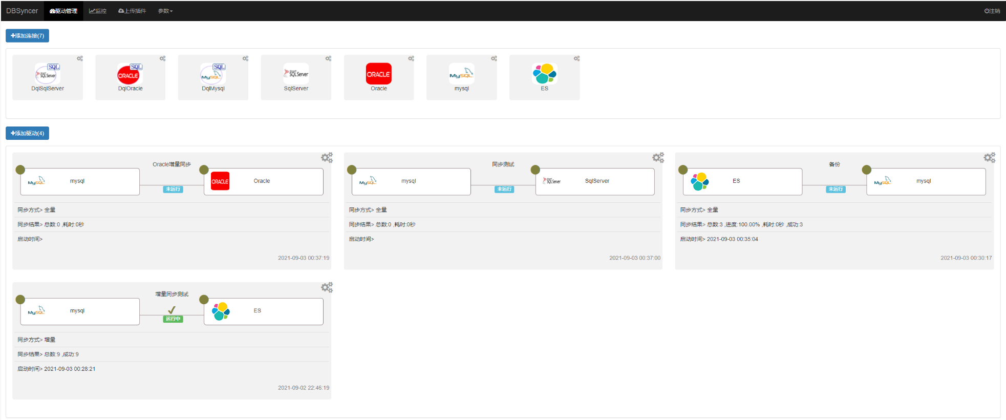 实时监控,驱动全量或增量实时同步运行状态、结果、同步日志和系统日志