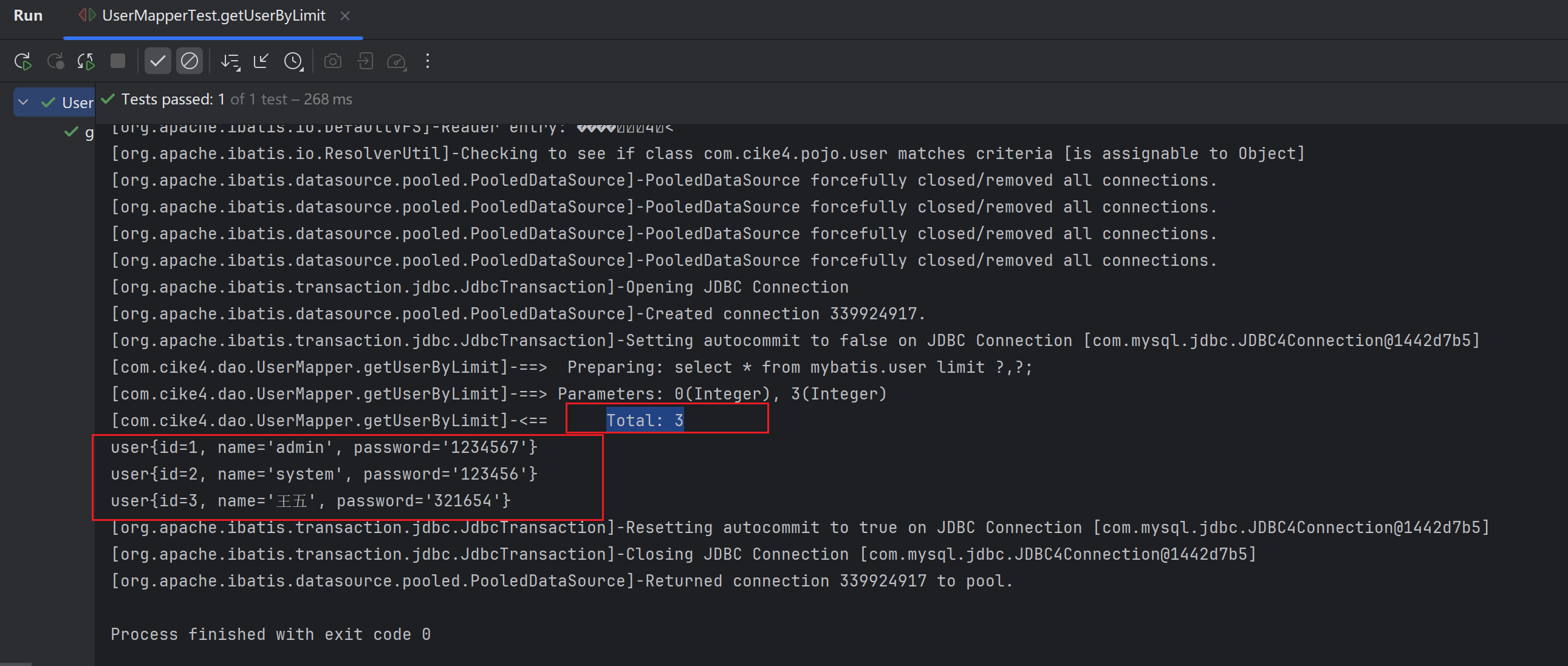 List<user> userByLimit = mapper.getUserByLimit(map);