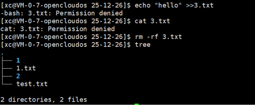场景:先用root账号在普通用户路径下创建一个文件,设置成别人不可读写。