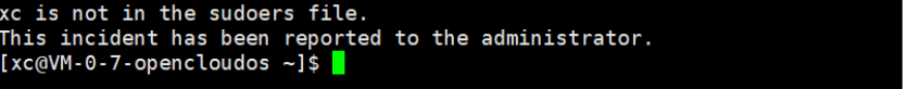 注意 :普通用户加上sudo后,如果不在白名单中,只会报错"不信任"。