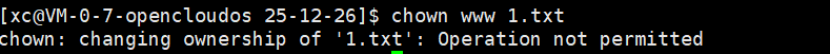 限制 :普通用户不能直接把文件所有者改为别人,否则就乱套了,需要sudo短暂提权后才能更改。