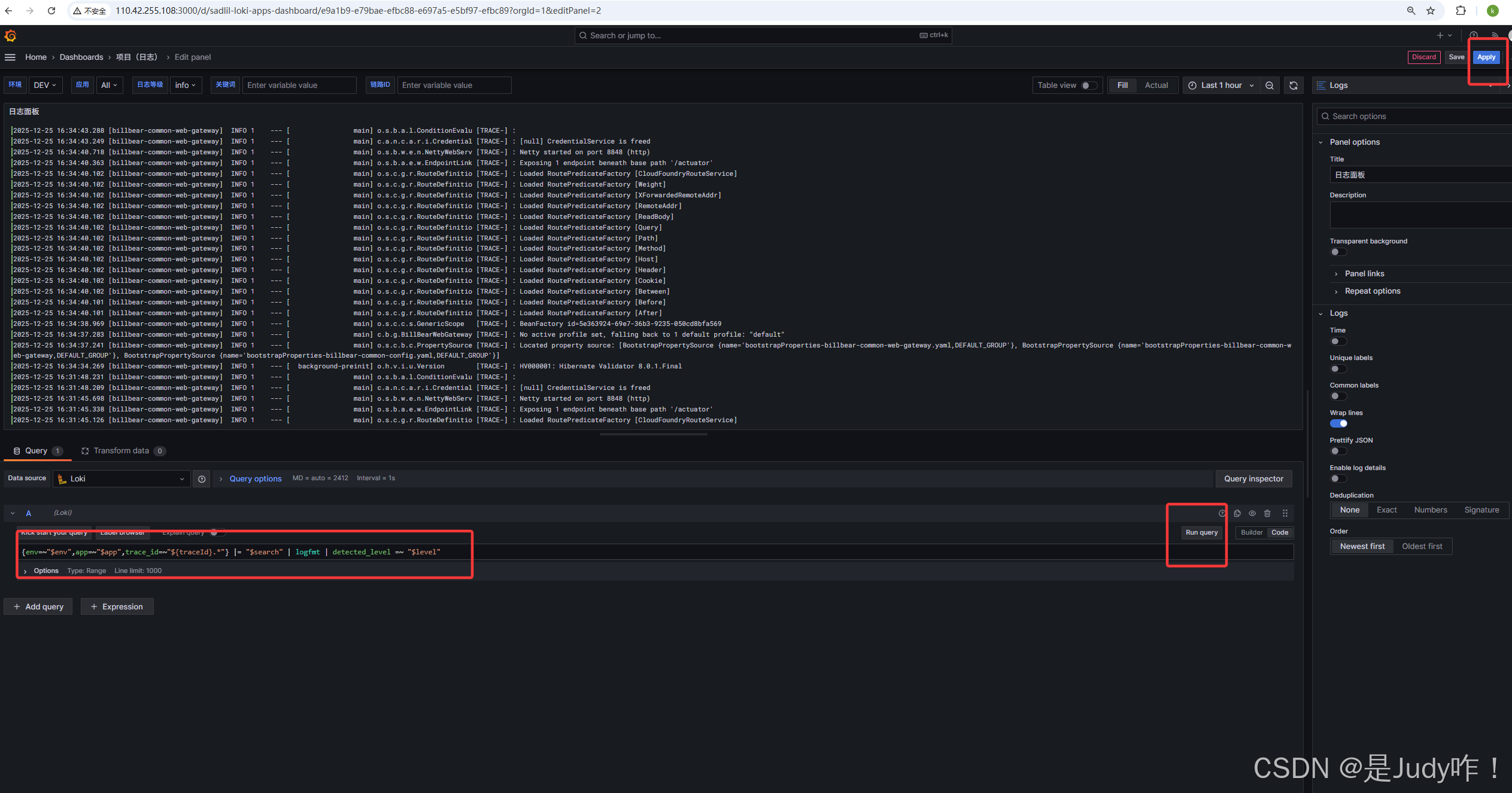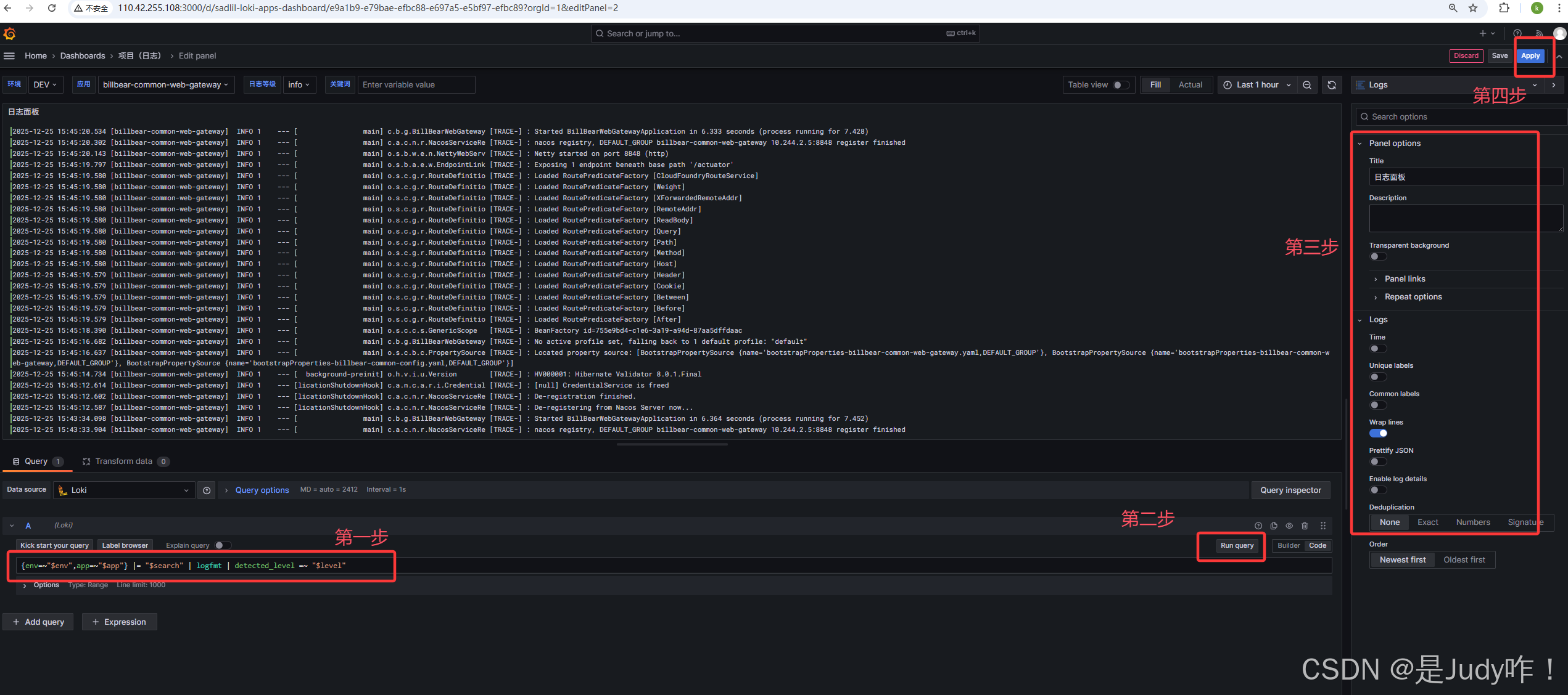 应用日志通过 Promtail 统一采集,集中存储于 Loki,并在 Grafana 中进行多维度查询与分析。
