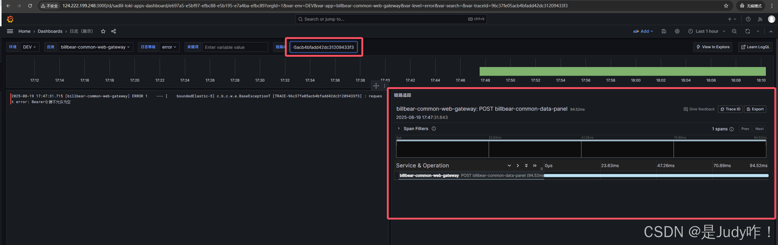 - 统一可观测入口:日志与链路在 Grafana 中集中展示,降低使用门槛