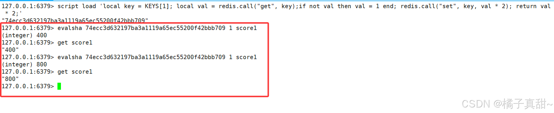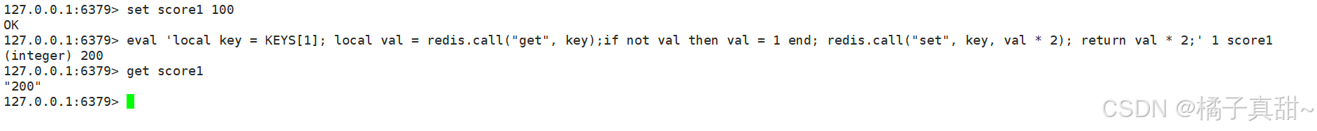 redis.call("set", key, val * 2); return val * 2;' # 末尾是没有score1这个参数的