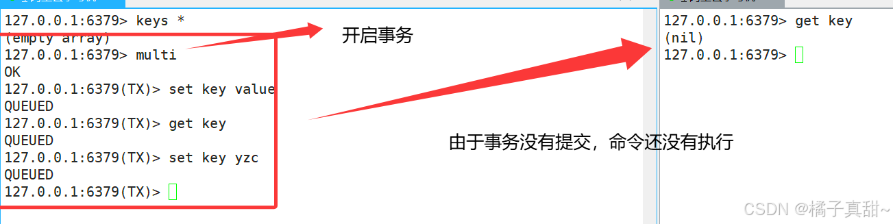 此时就需要使用redis事务:redis单个命令是原子的,多个命令原子需要开启事务