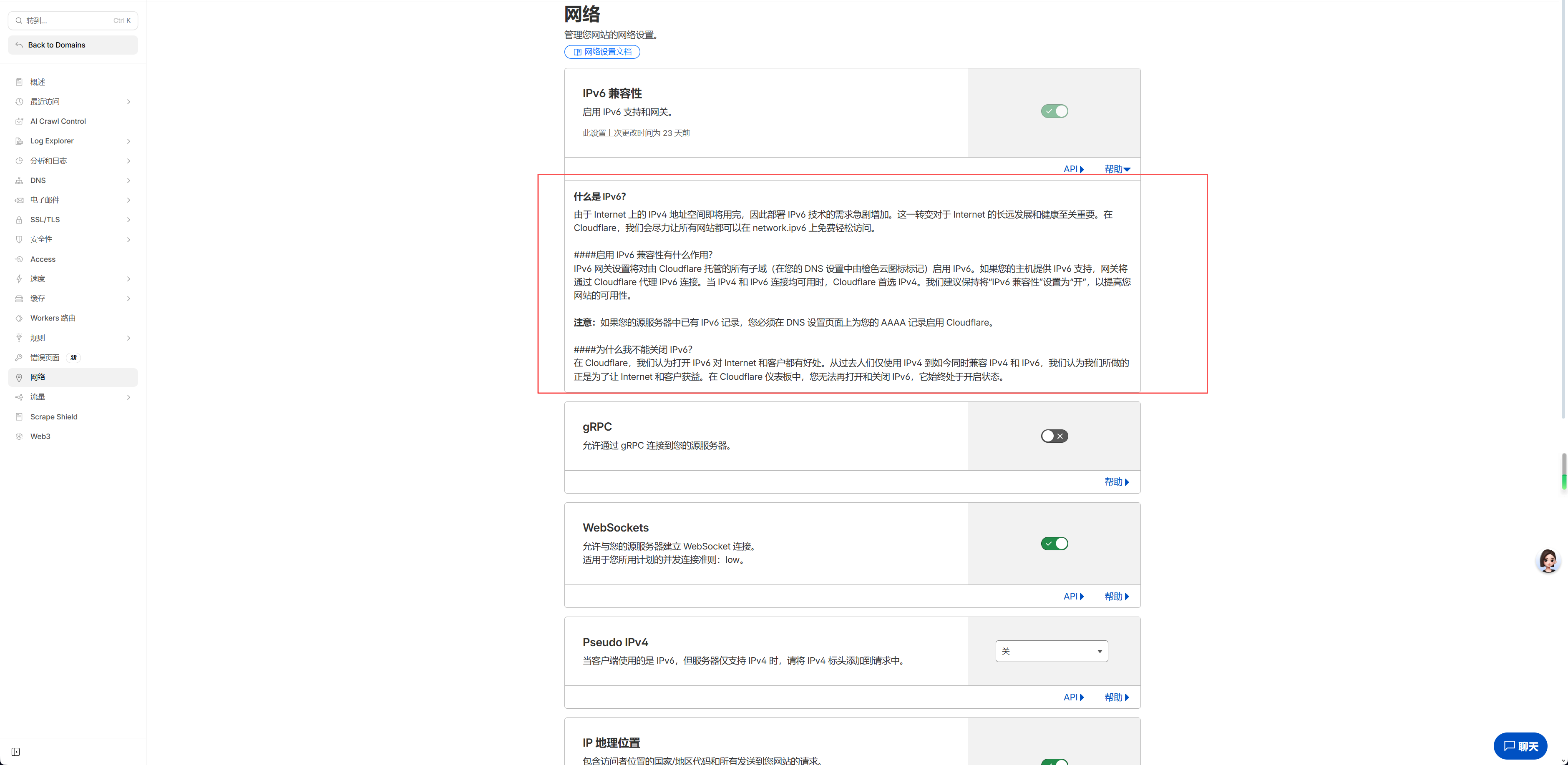 - 网络访问规则:只有一个固定IPv4已加入域名IP白名单,IPv6为动态地址(每次变更需重新配置白名单,操作成本高),因此未将任何IPv6加入白名单,IPv6访问会被拦截;