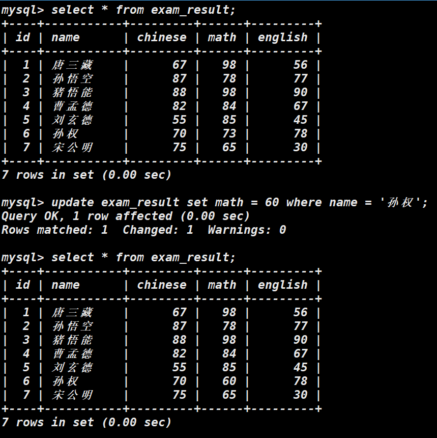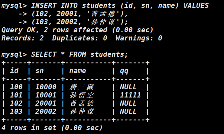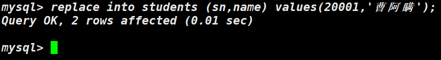 0 row affected:表中有数据冲突,但要插入的值和原先的值一致,所以0行改变