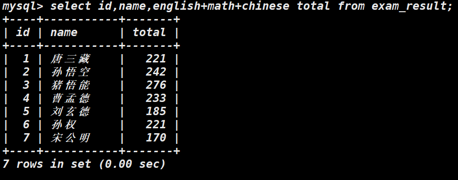 聚合函数类似,count sum avg max min,用于计算列数量,数据总和,平均最大最小值