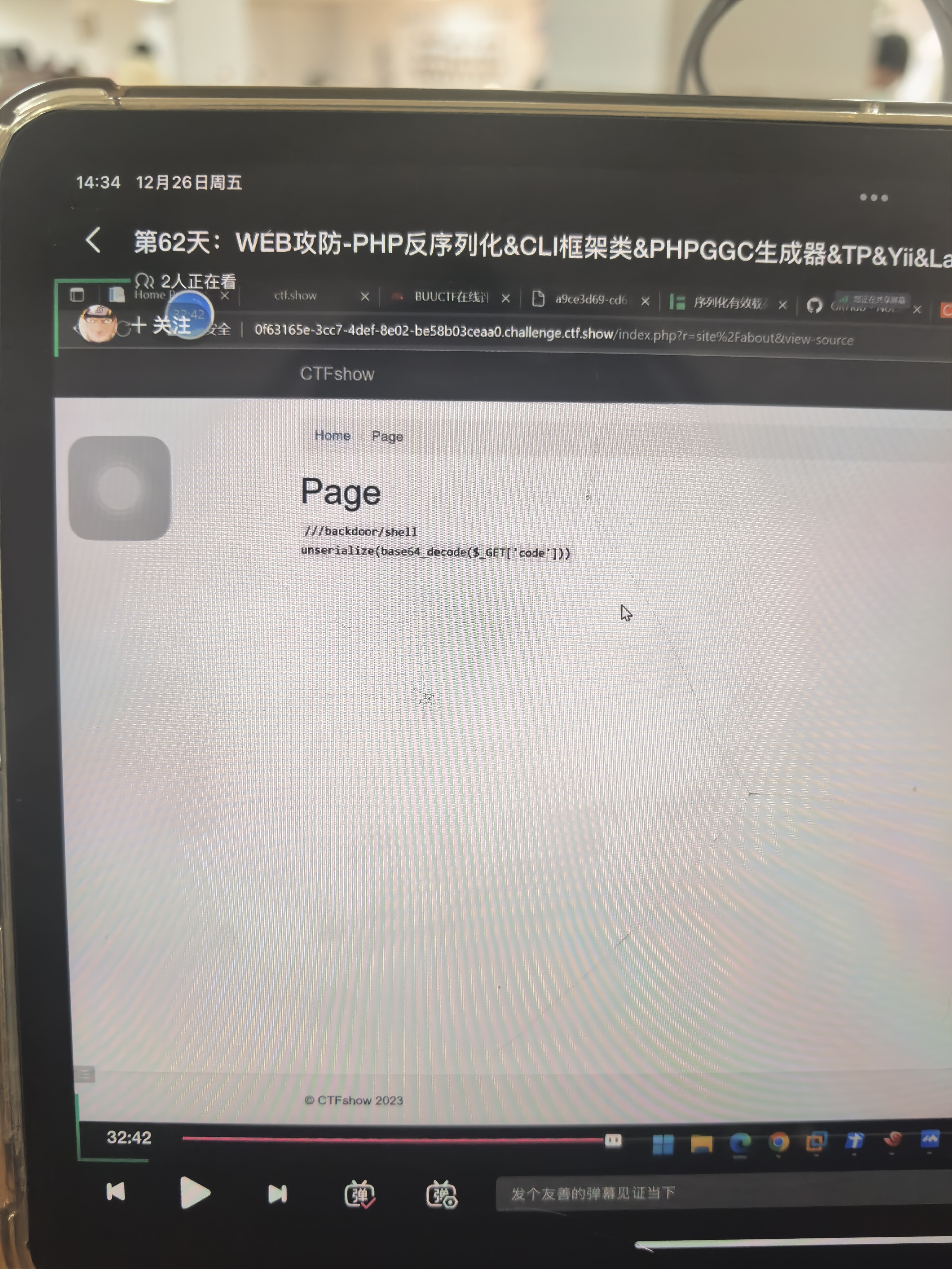 backDoor 类中定义了 code = "system('tac flag.php');" (执行系统命令的代码),当 class 变成 backDoor 对象后,后续只要触发相关魔术方法(如 __destruct() / __call() ),就能调用 $code 中的命令,实现代码执行。