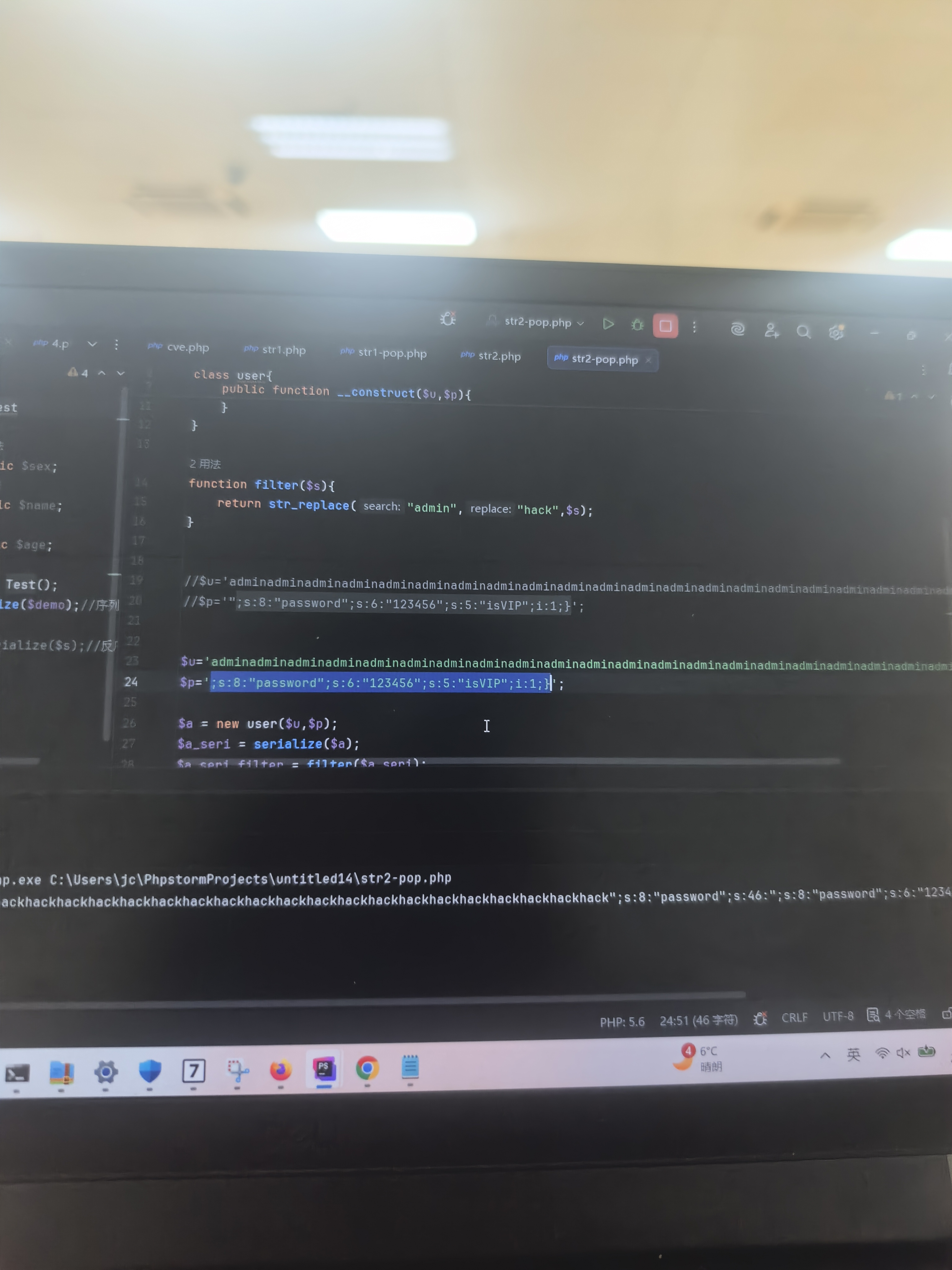属性长度匹配:字符串属性的长度标识必须与实际内容一致(如 s:18:"<?php system('whoami'); ?>"; );