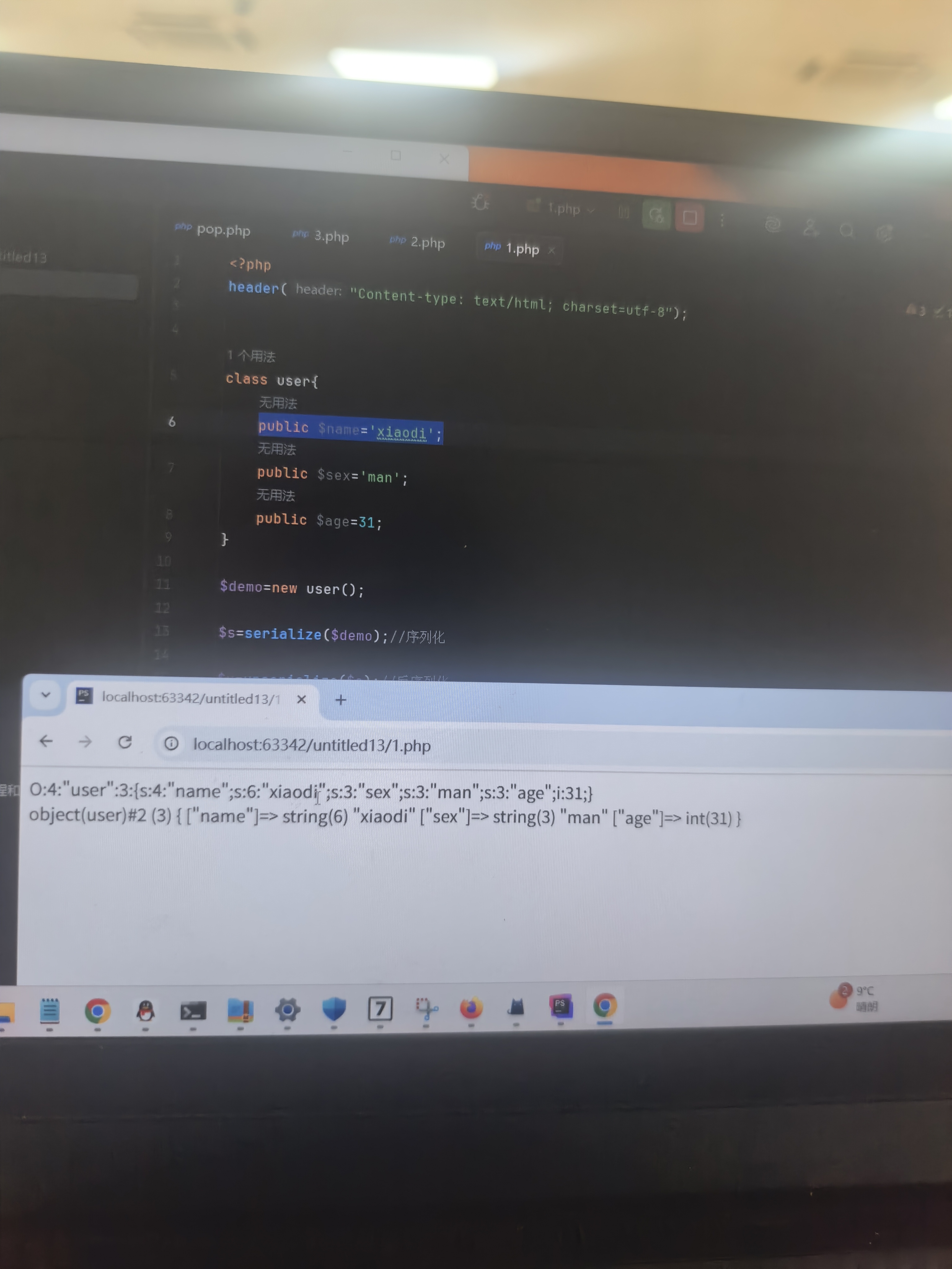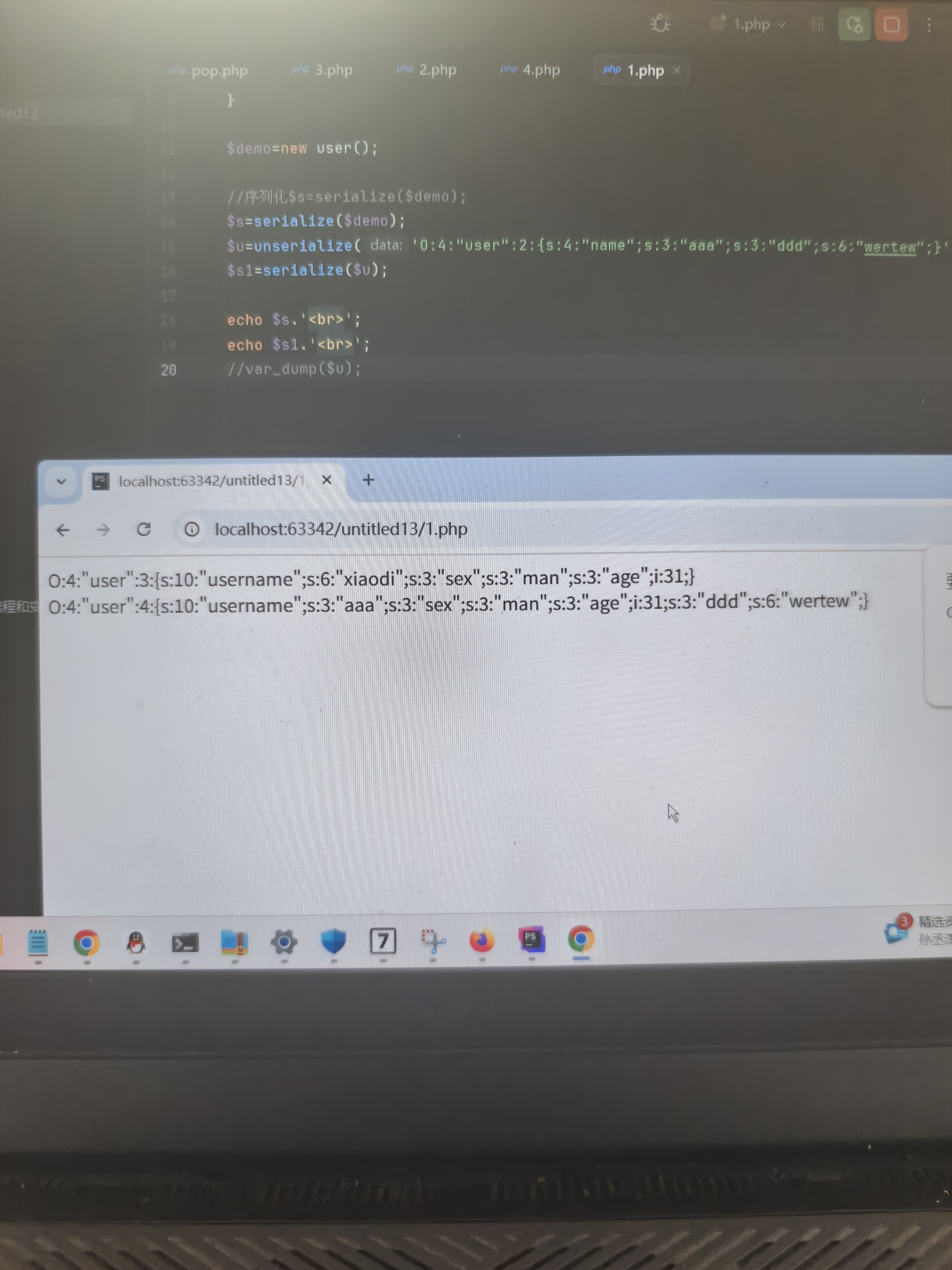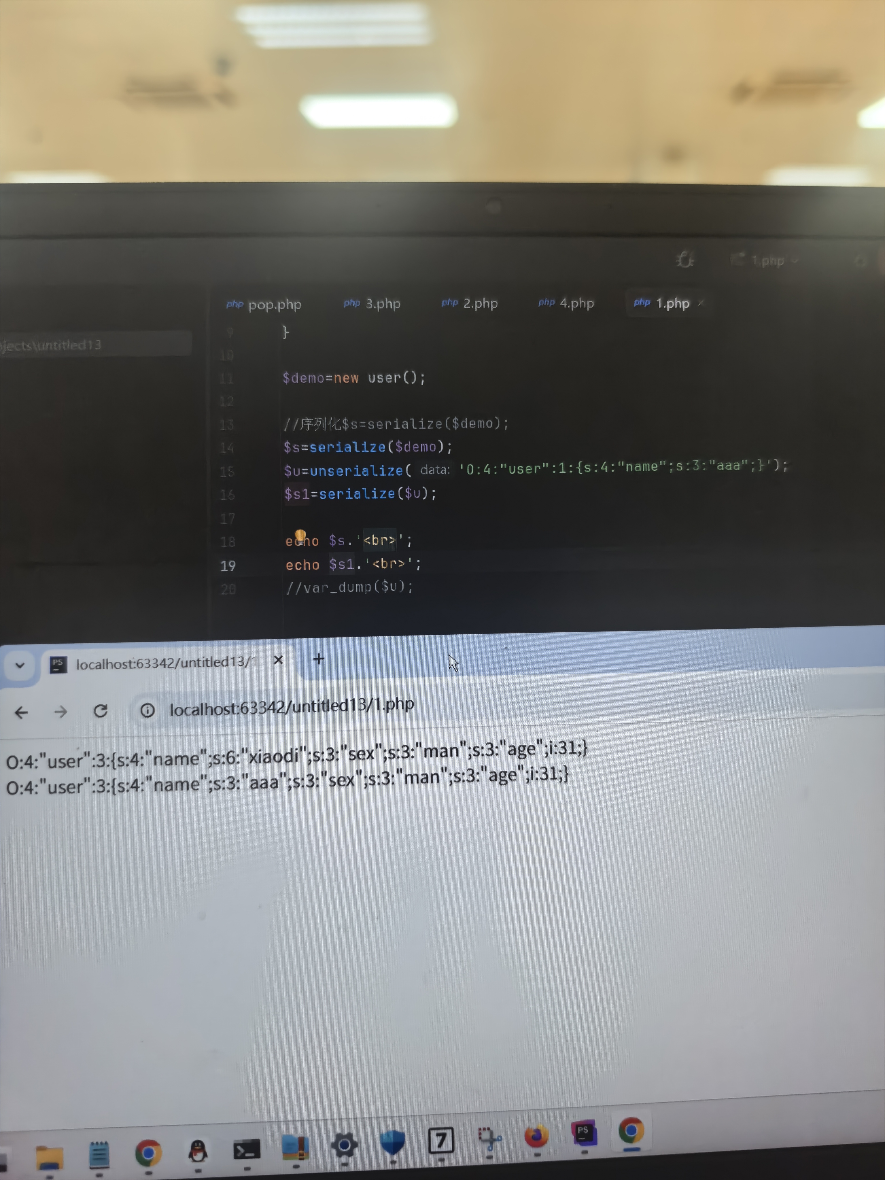 不是的,PHP序列化( serialize() )并非只能显示属性,序列化字符串会包含类的基础信息、属性数量与属性值,而反序列化后的对象还能调用类中的方法------你看到的输出只有属性相关内容,是因为序列化的核心是保存对象的状态(属性值),不会存储类的方法代码,具体拆解如下: