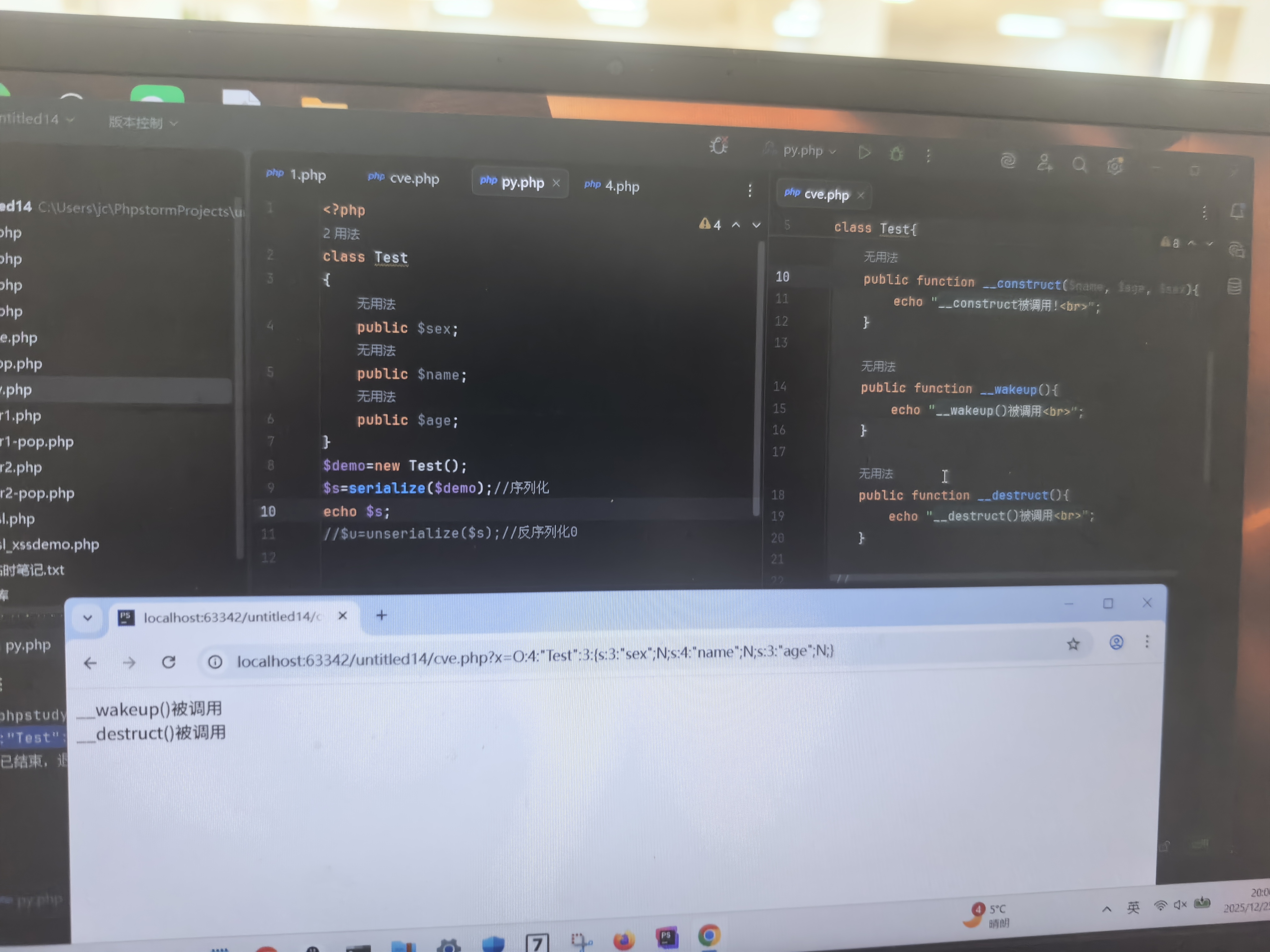 动态新增属性/方法:PHP是弱类型语言,还能给反序列化后的对象新增属性(如 $demo->newAttr = 'test' )或临时绑定方法。