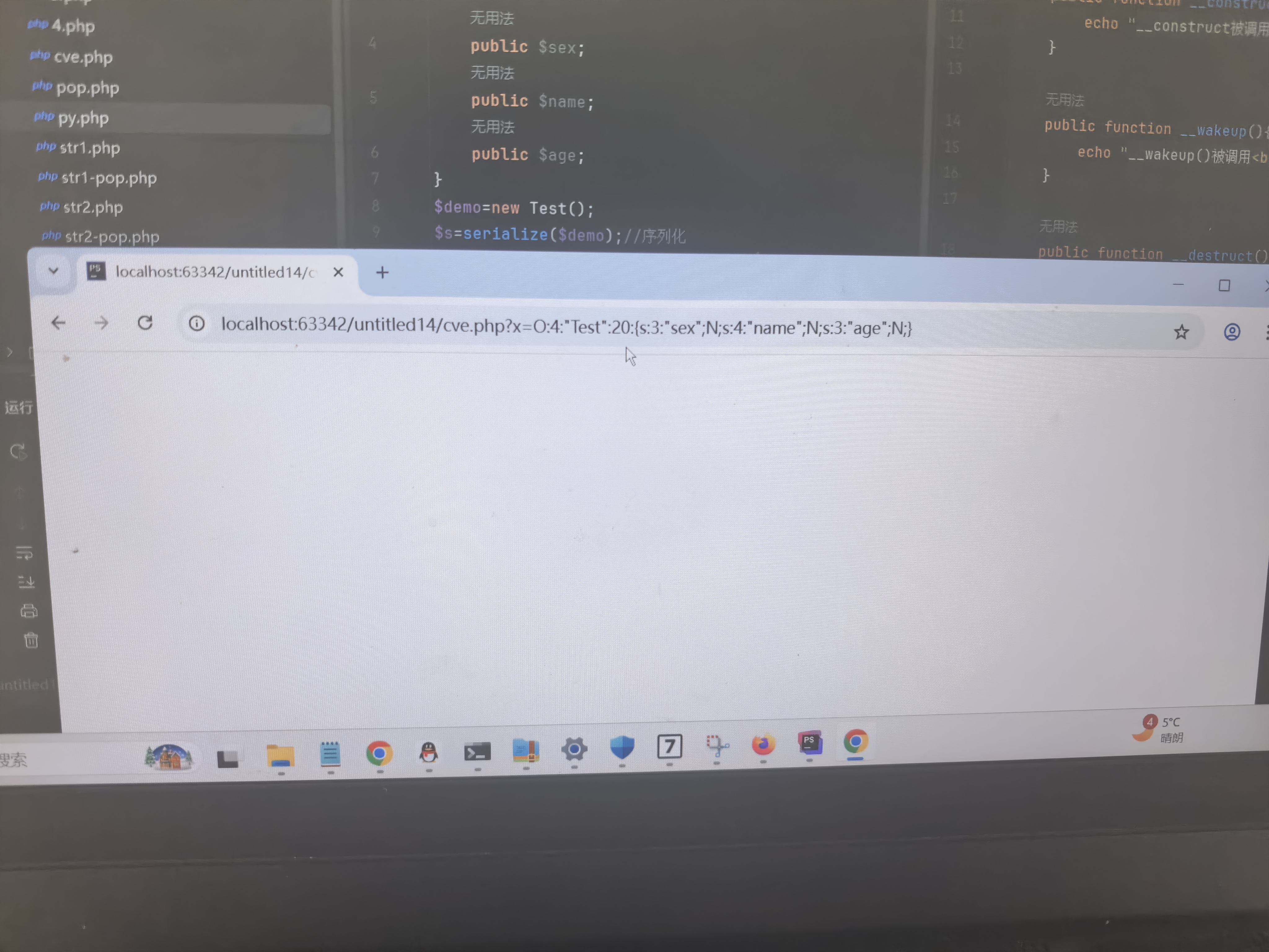 将处理后的payload传入第一步找到的反序列化点,触发 unserialize() 执行: