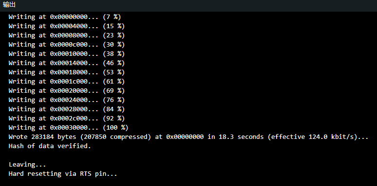 然后直接编译下载就可以了。这个下载程序比较简单不需要IO0和RST短接什么的直接就成功了