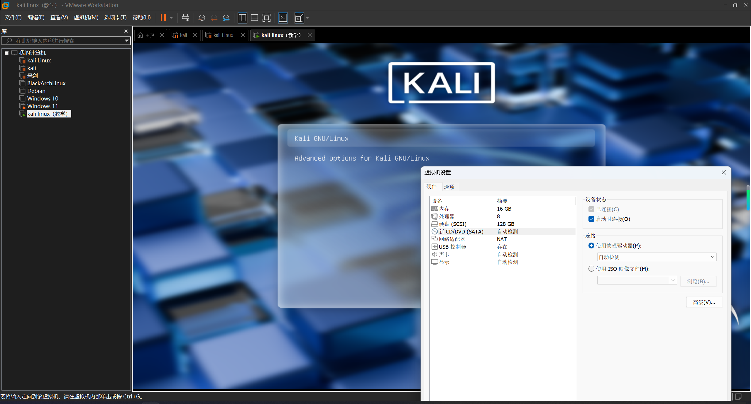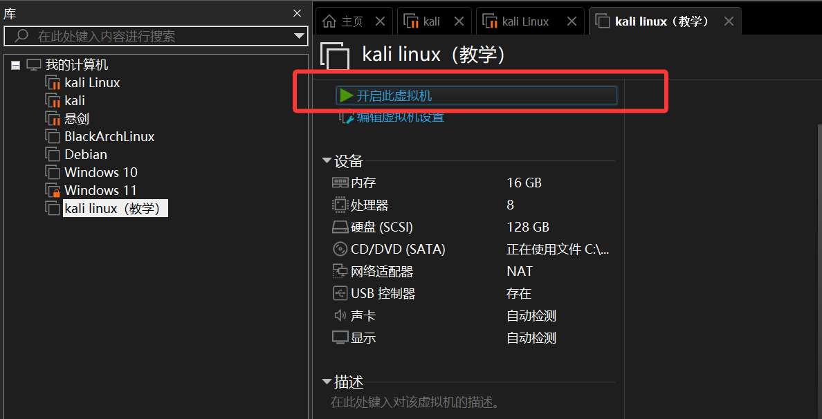 参考Kali Linux下载安装及配置(VMware虚拟机)保姆级图文教程(持续更新)(2024年11月19日发布,2025/11/4最新更新)_kali虚拟机-CSDN博客一文基础配置