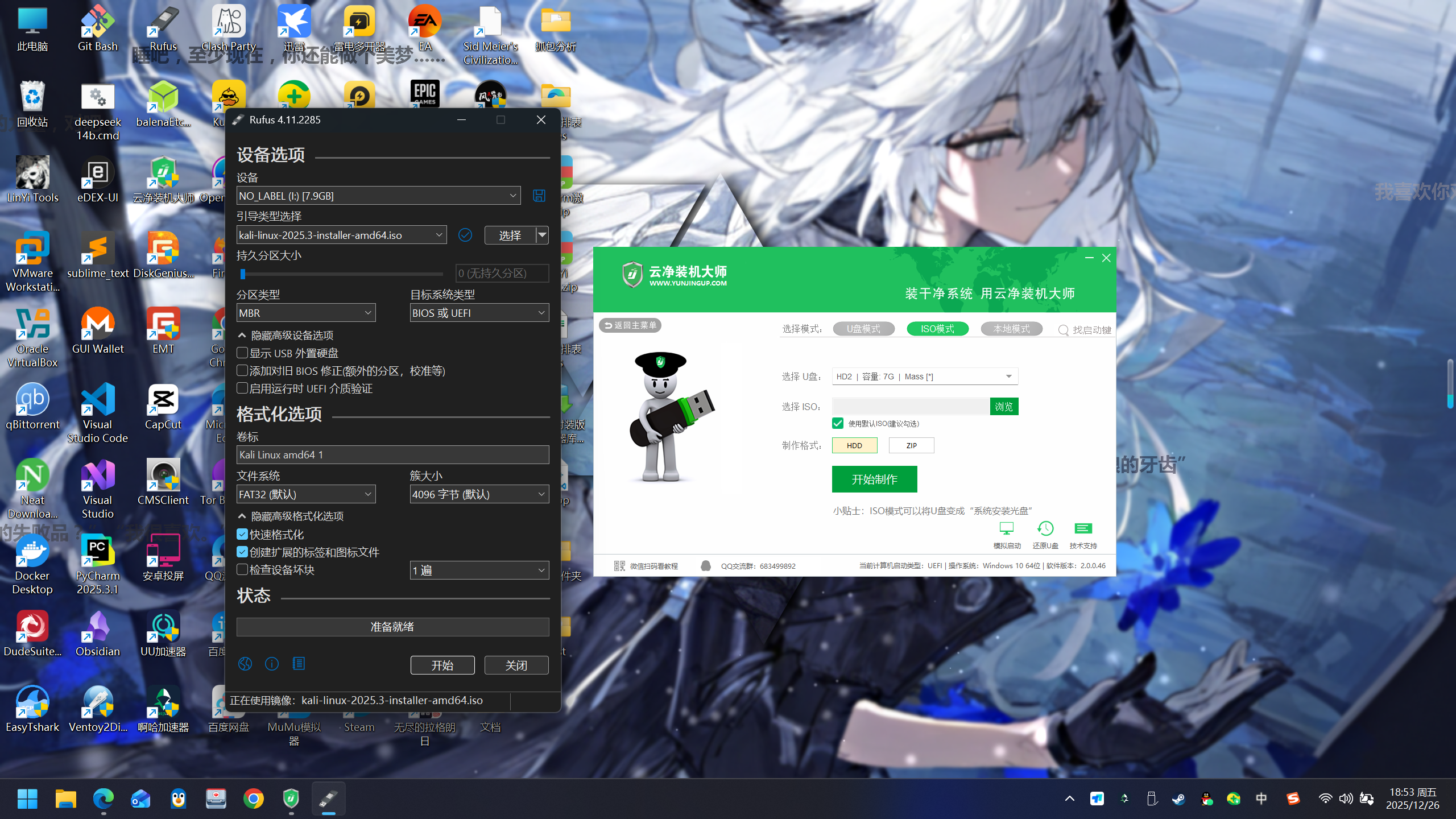 下载一个Rufus或者其他系统启动盘制作器,比如云净装机大师