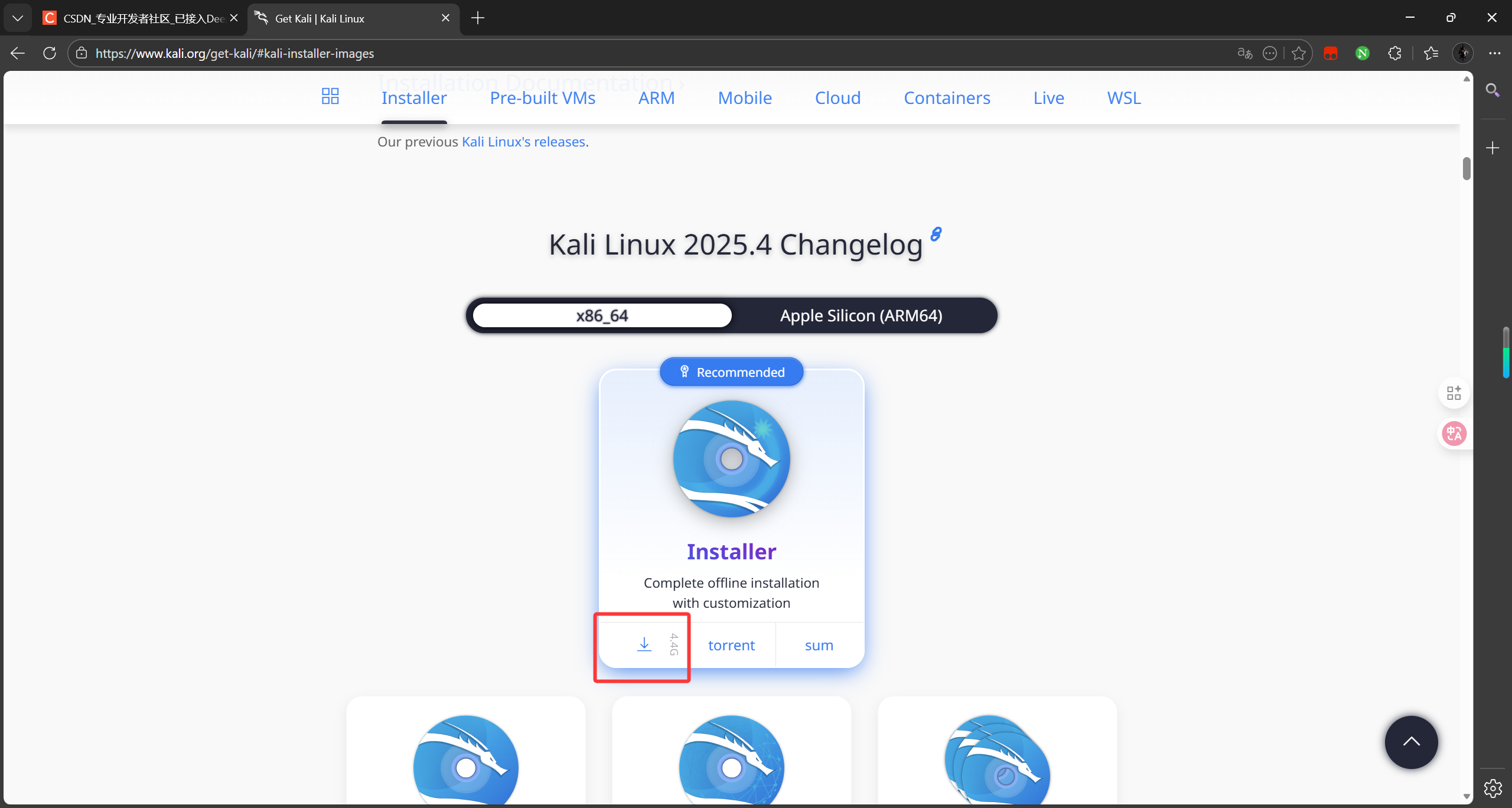 或者直接使用连接下载https://cdimage.kali.org/kali-2025.4/kali-linux-2025.4-installer-amd64.iso