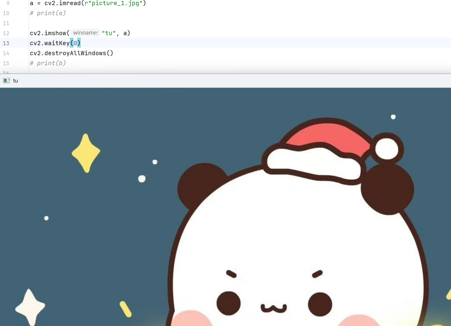 cv2.imshow(winname, mat):winname:窗口名称(字符串)。mat:要显示的图像矩阵。