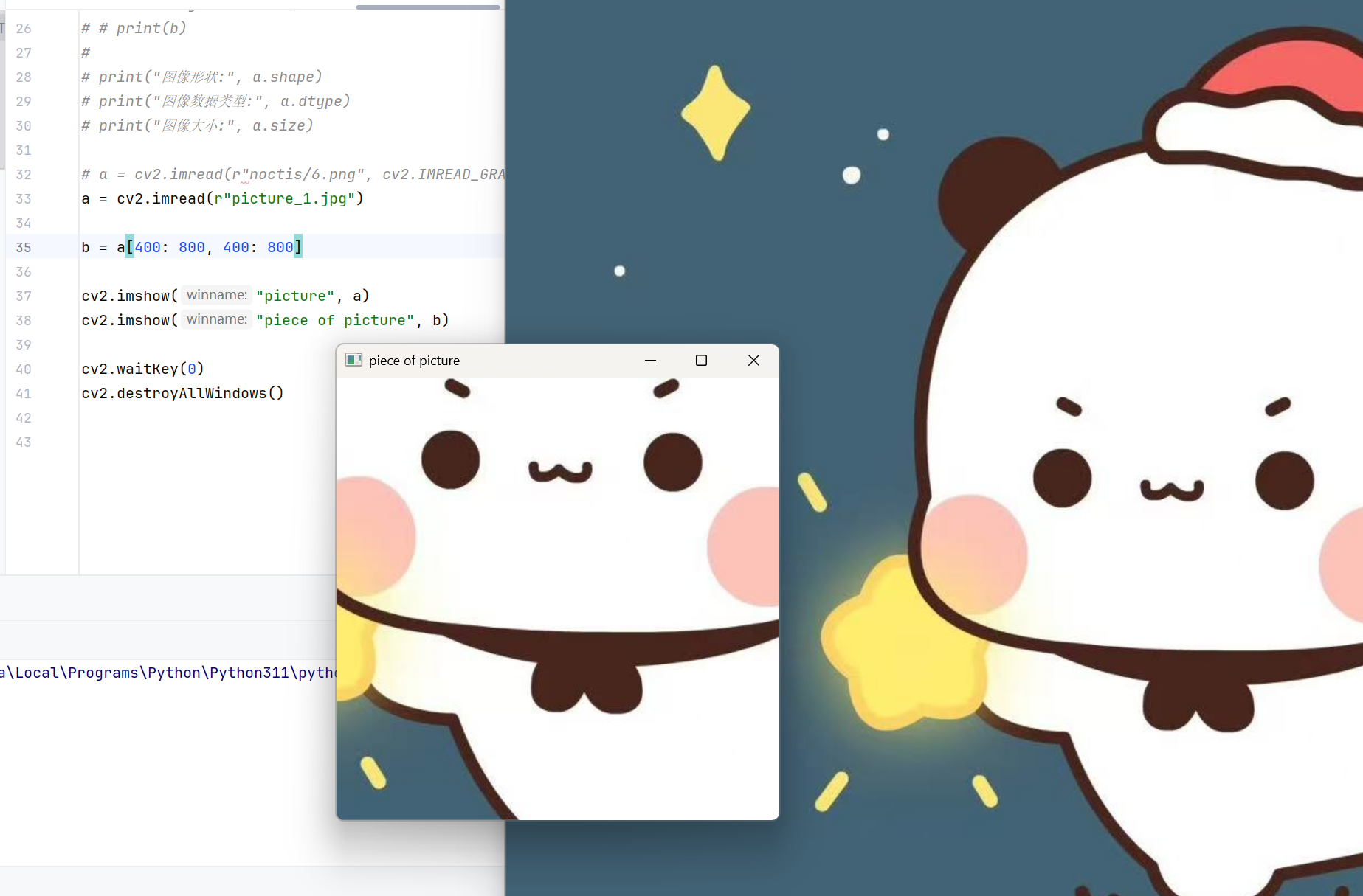 说明 :切片格式为 [y_start:y_end, x_start:x_end],注意 OpenCV 中坐标顺序为 (y, x)。