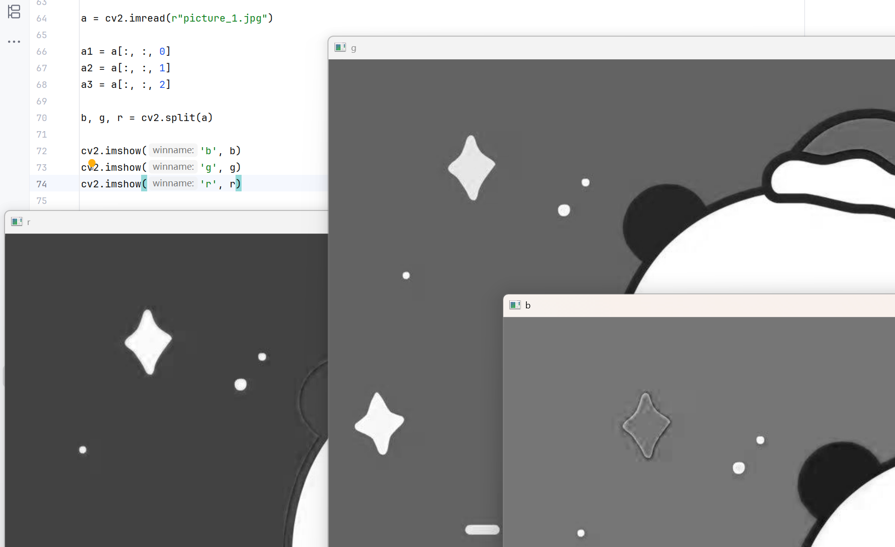 彩色图像由 B(蓝)、G(绿)、R(红)三个通道组成。OpenCV 默认以 BGR 顺序存储图像。
