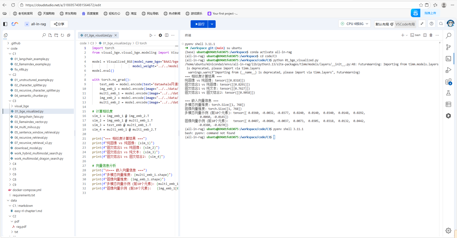 用 BGE-M3 模型可以轻松实现文本、图像及图文组合的编码,核心代码如下