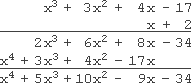 ( x + 2 ) ( x 3 + 3 x 2 + 4 x − 17 ) (x + 2)(x^{3} + 3x^{2} + 4x - 17) (x+2)(x3+3x2+4x−17)