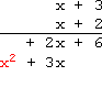 用下方的 x x x 乘以上方的 + 3 +3 +3,得到结果 + 3 x +3x +3x 并写下: