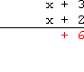 Multiply the bottom + 2 +2 +2 by the top + 3 +3 +3, and carry down the + 6 +6 +6: