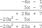 − 20 x 2 + 23 x + 7 -20x^{2} + 23x + 7 −20x2+23x+7