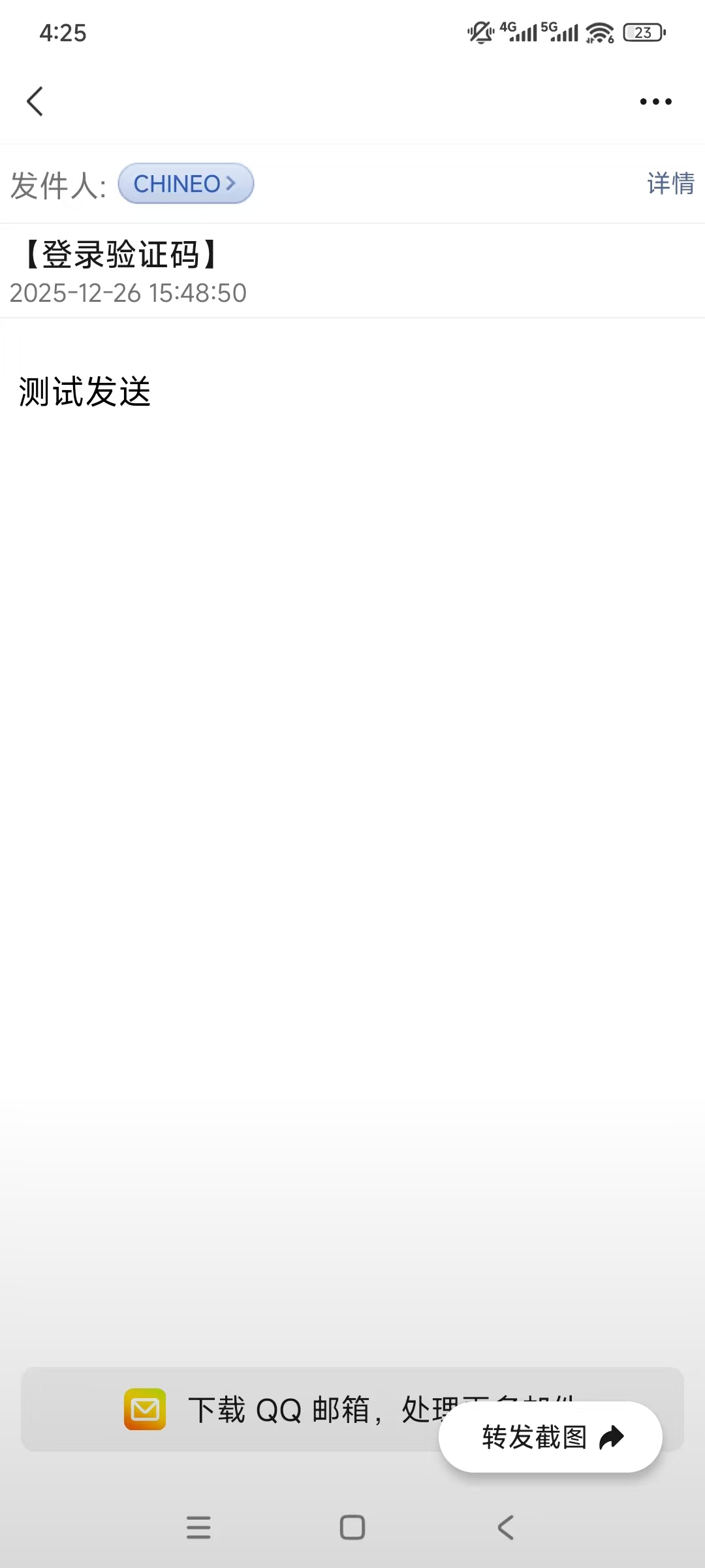 Mail.Send(发送邮件的核心权限)→ 「添加权限」 - 点击「授予管理员同意(你的企业域名)」(必须完成此步骤,否则权限不生效)