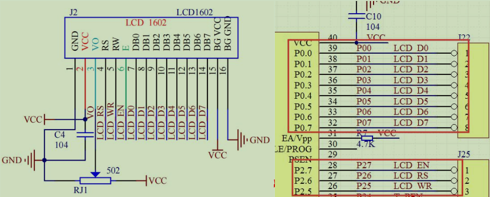 RJ1 是一个电位器,用来调节 lcd1602 对比度,即显示亮度