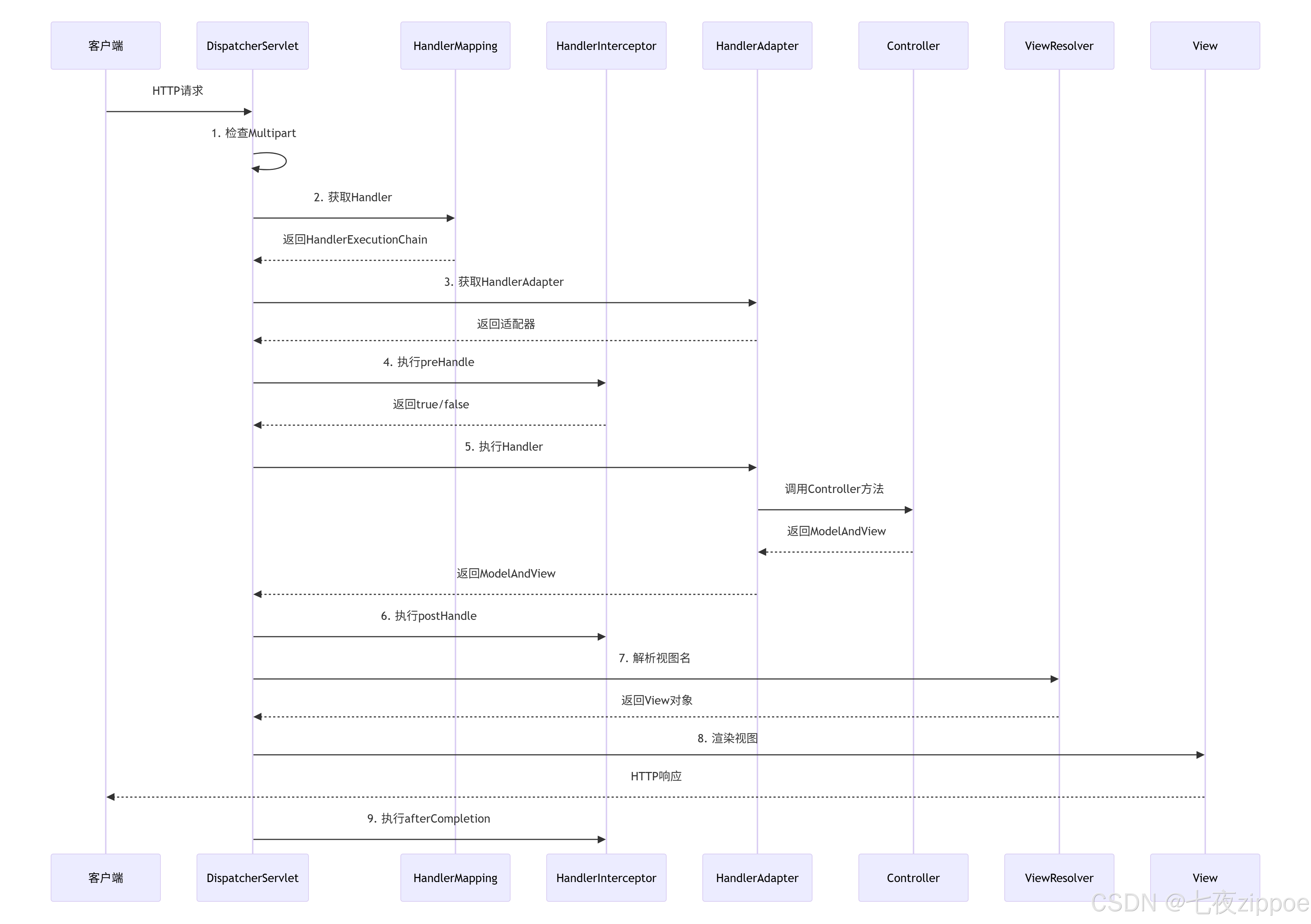 2. 请求处理九大步:DispatcherServlet的"工作流程"