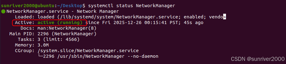 systemctl status NetworkManager # 检查状态应为 active(running)