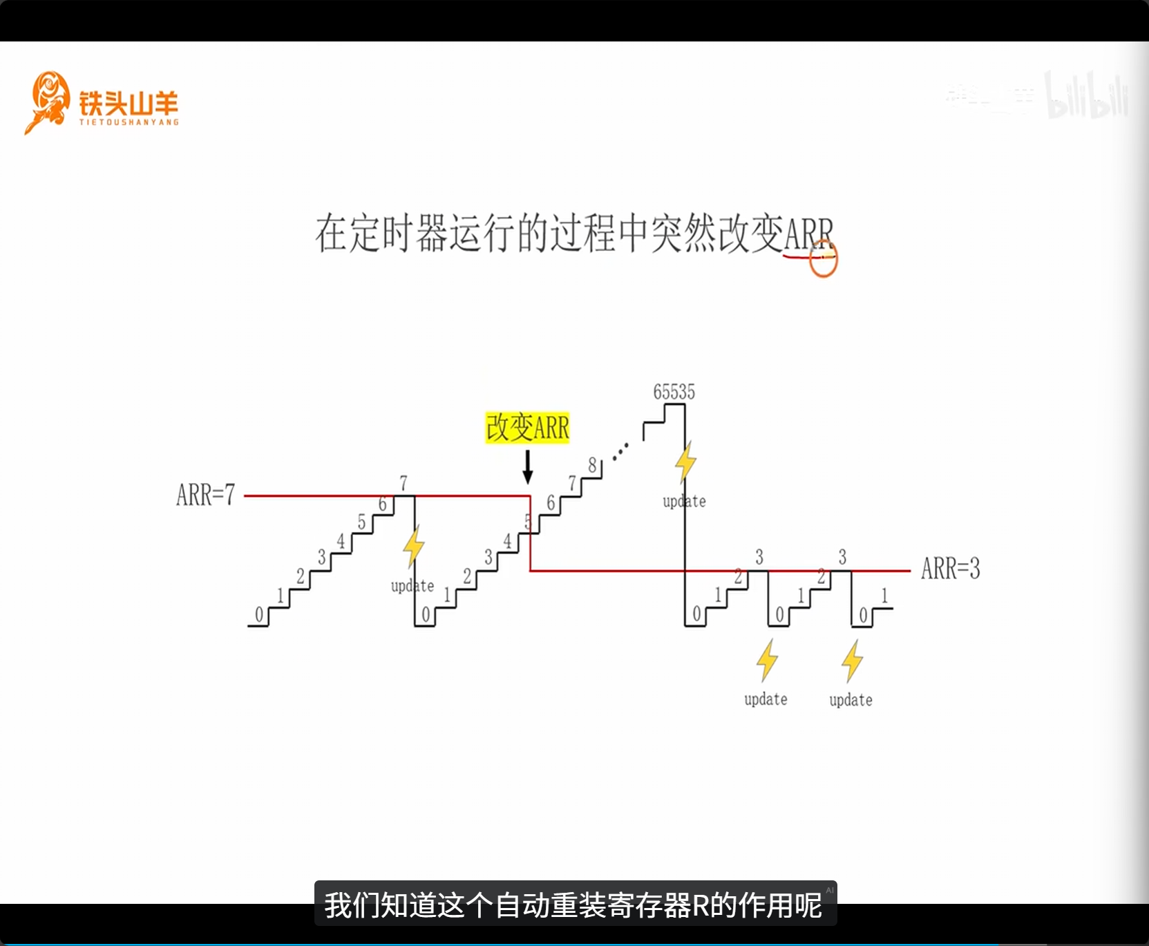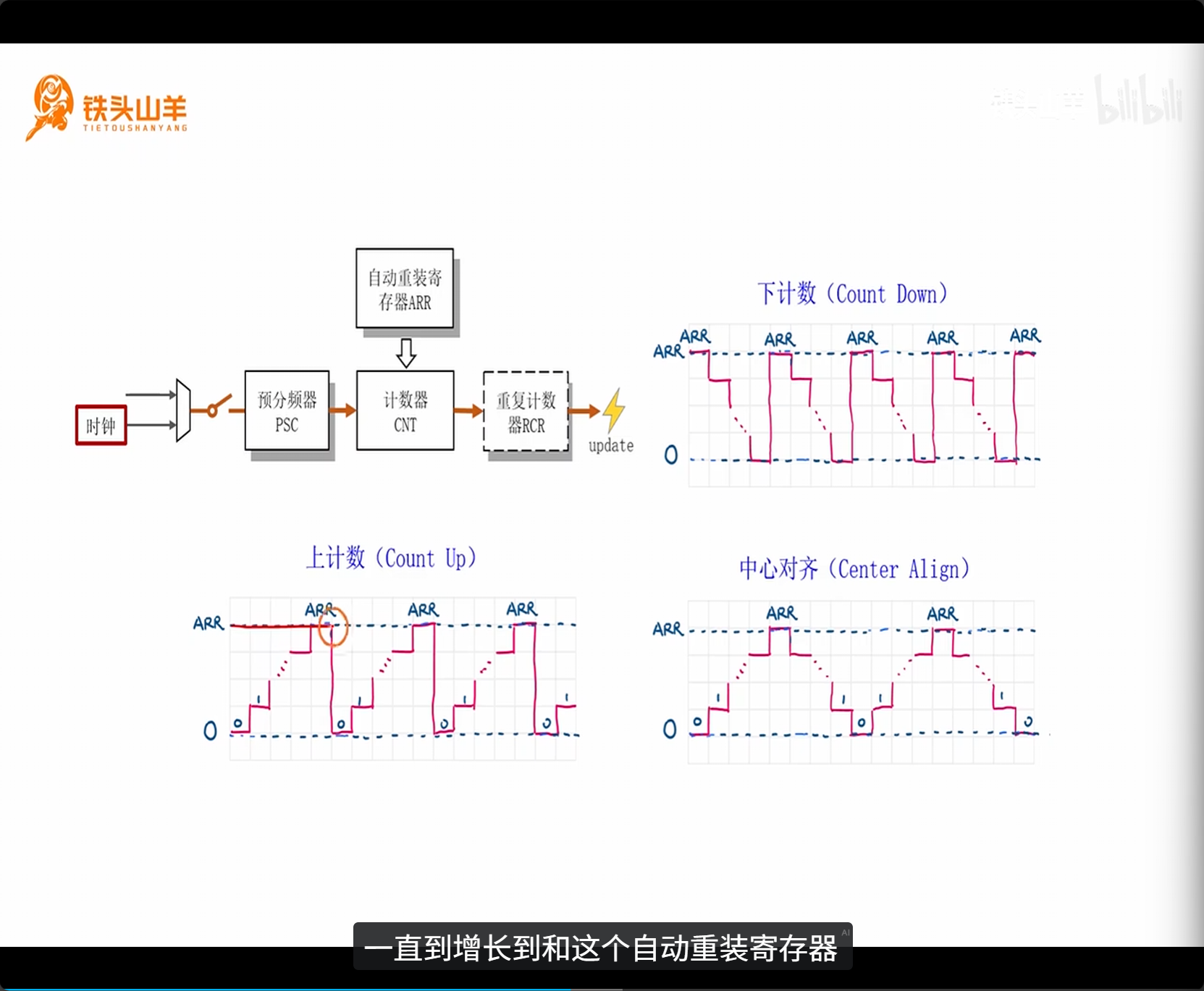 下计数:从 ARR 开始计数,来一个脉冲就减一,直到 0