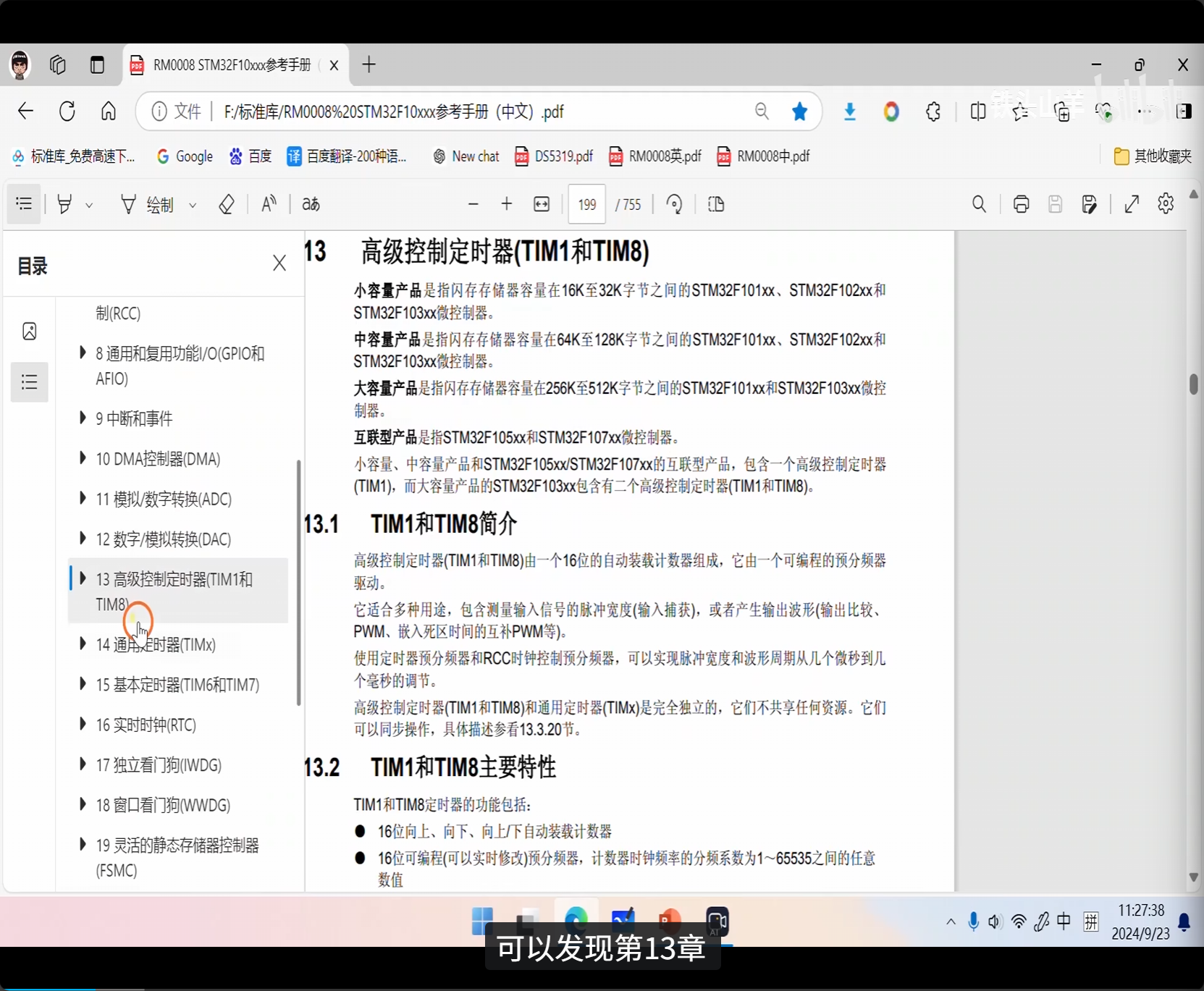 RM0008 数据手册中,可看到定时器分三类:高级,通用 (高级定时器阉割版),基本(通用定时器阉割版)。