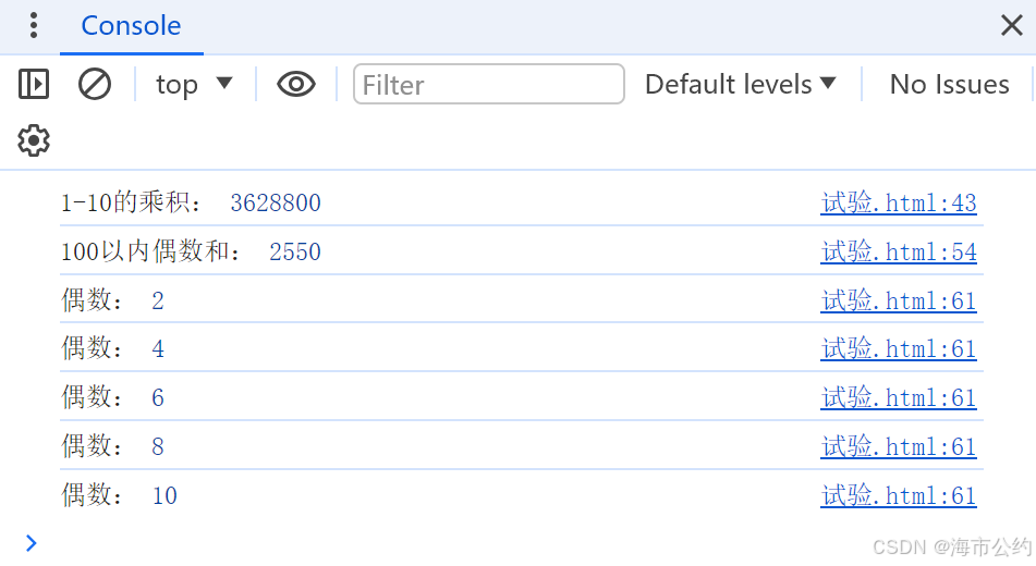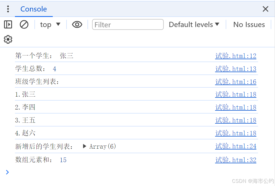 | console.log('内容') | 在浏览器控制台打印信息(调试/输出) | console.log('调试信息') |