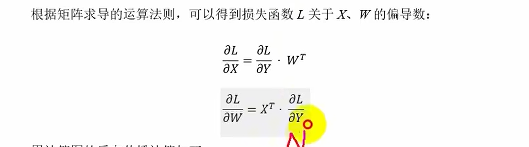 L对X求导:L损失函数是标量,Y形状是N*n,L对Y求导形状也是N*n,Y对X求导得W'(n*m),所以是右乘W'